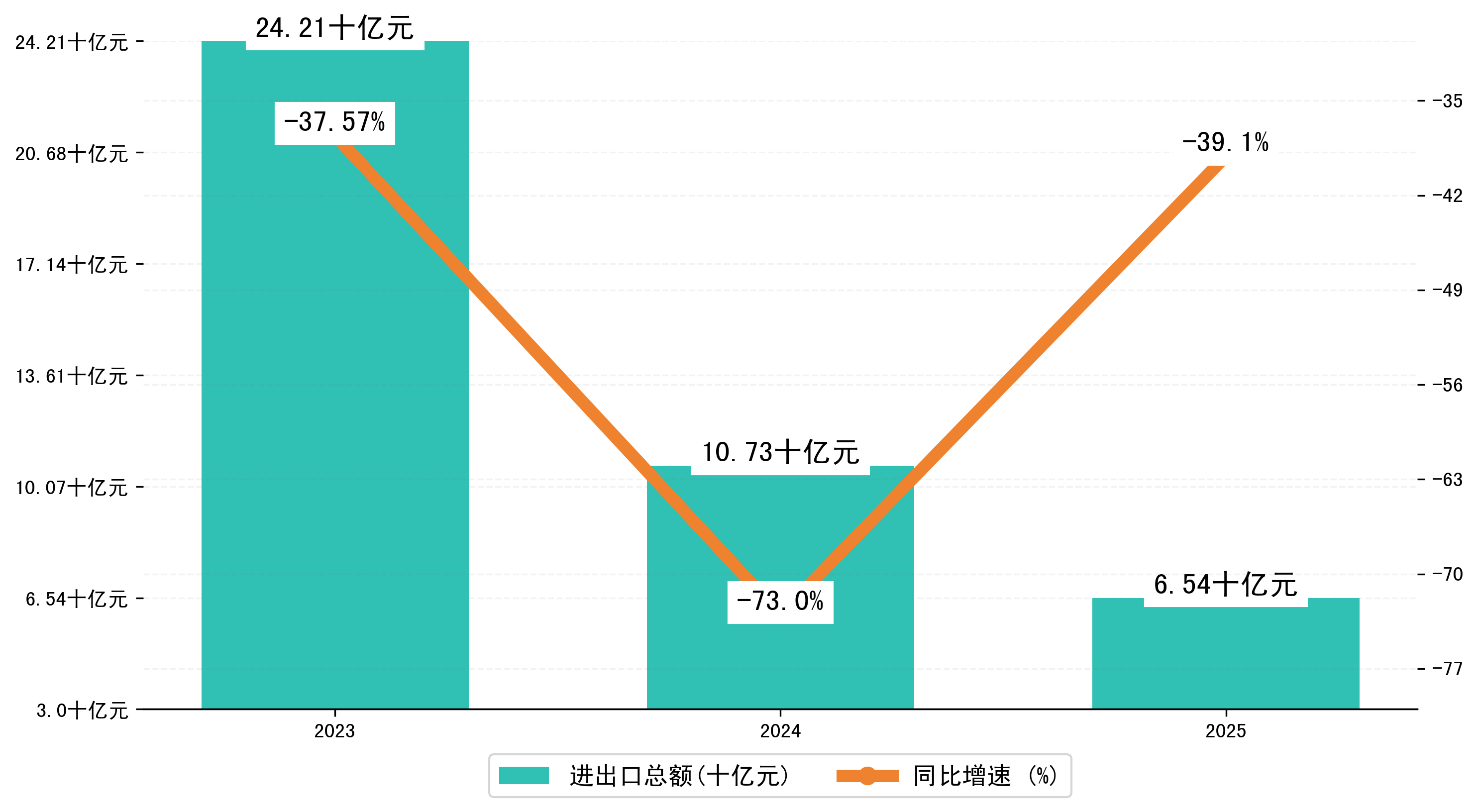 以人民币计,2025年1-4月新余市贸易差额为14,7784,1681万元(贸易逆差),相比上年同期减少了11,5073,5743万元,同比减少351.79%。