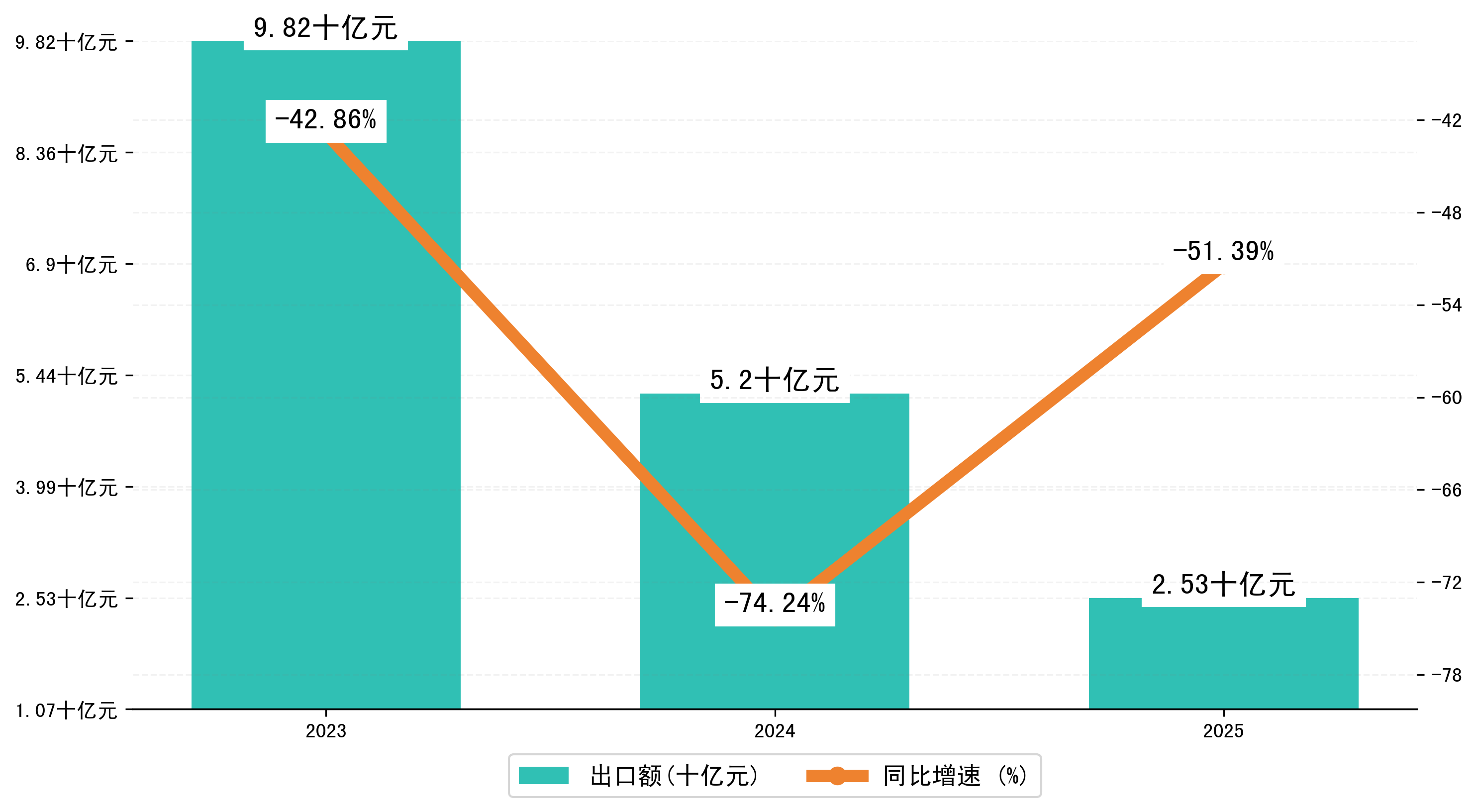 以美元计,2025年4月新余市出口额为7577.973万美元,相比上月减少了1965.2376万美元;相比上年同期减少了1,0750.4089万美元,同比减少-51.90%。