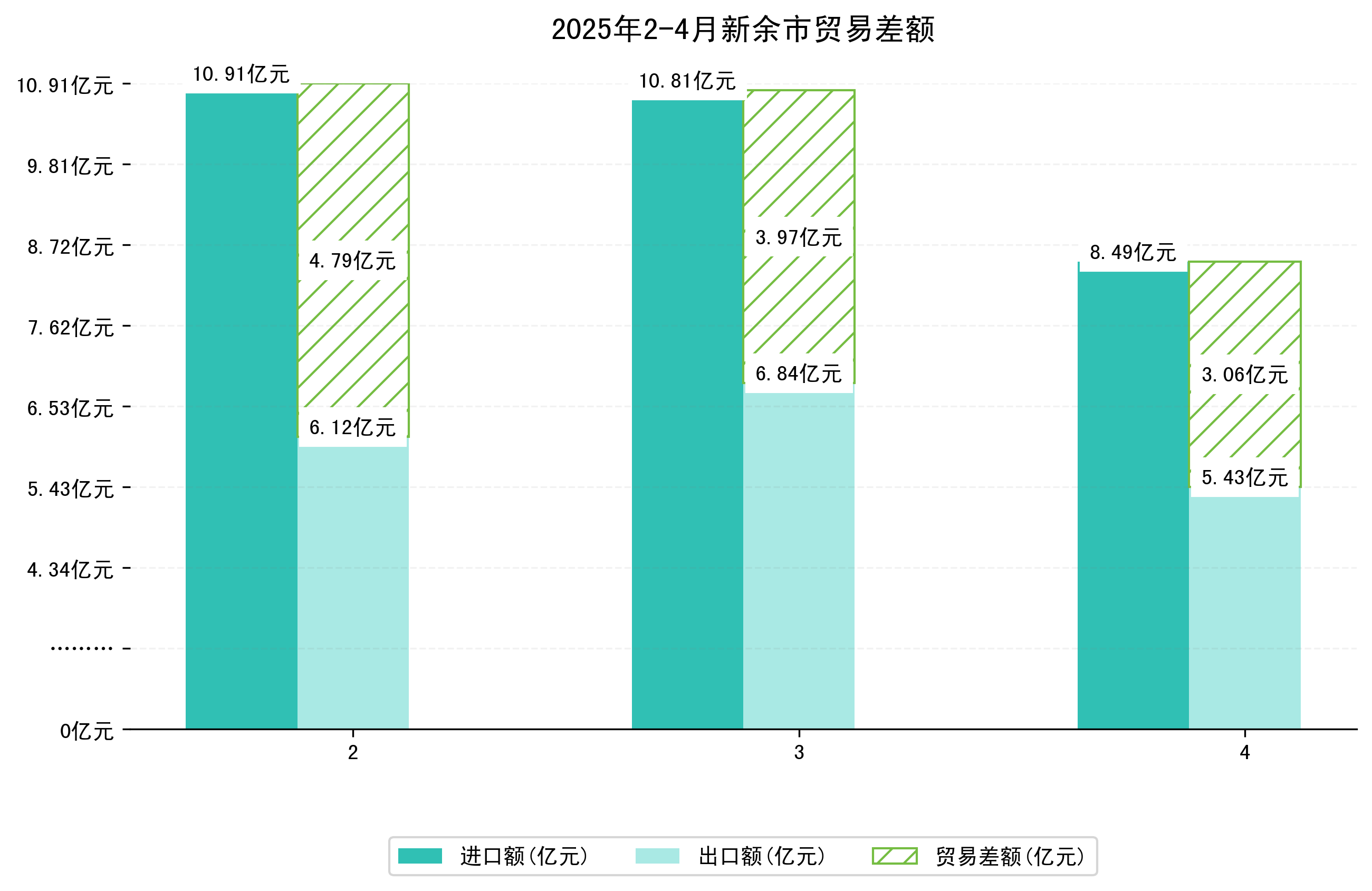 一、2025年4月新余市单月出口总额及进出口差额统计分析