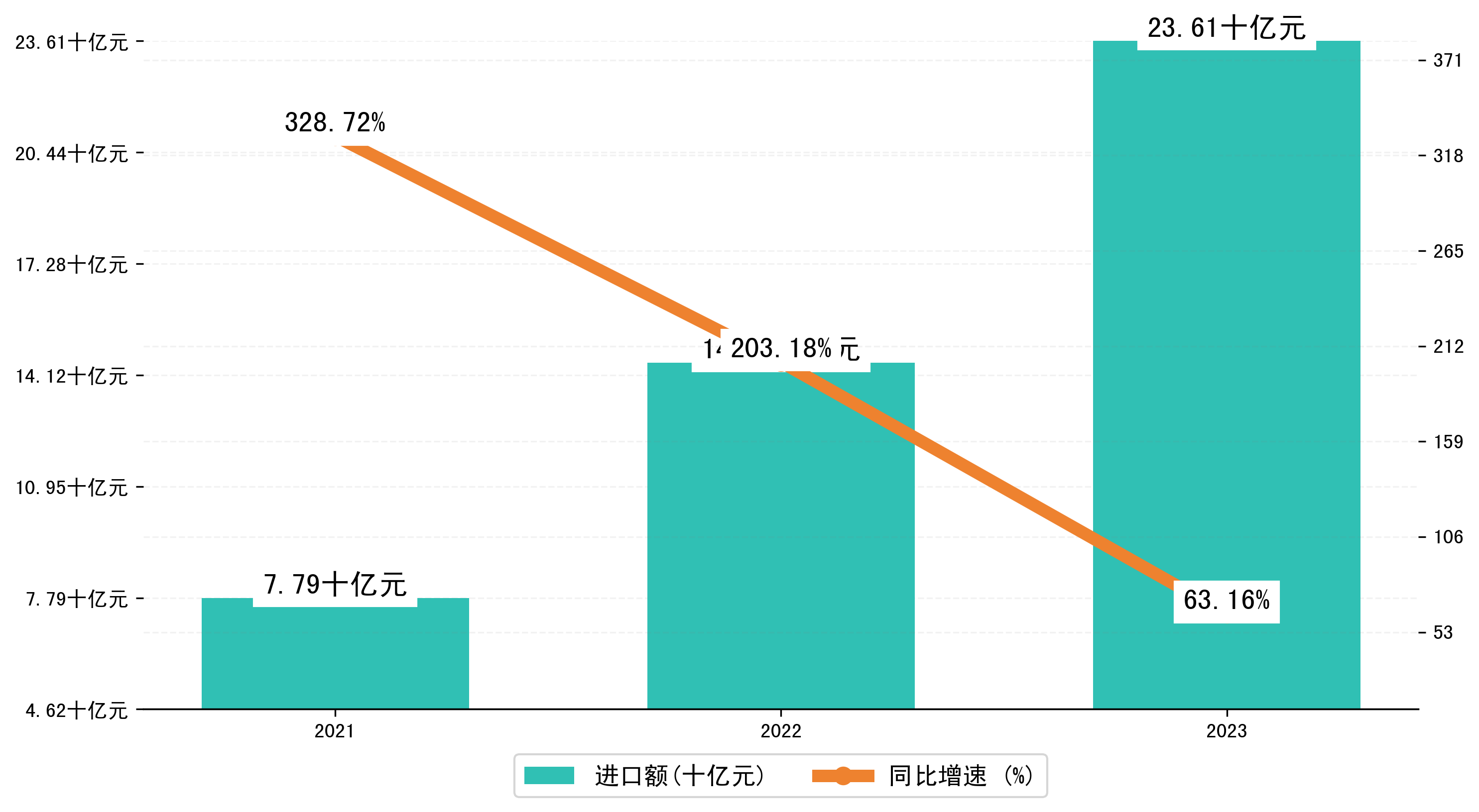 以美元计,2023年1-8月新余市进口额为34,1359.1994万美元,相比上年同期增加了12,0015.542万美元,同比增加53.00%。