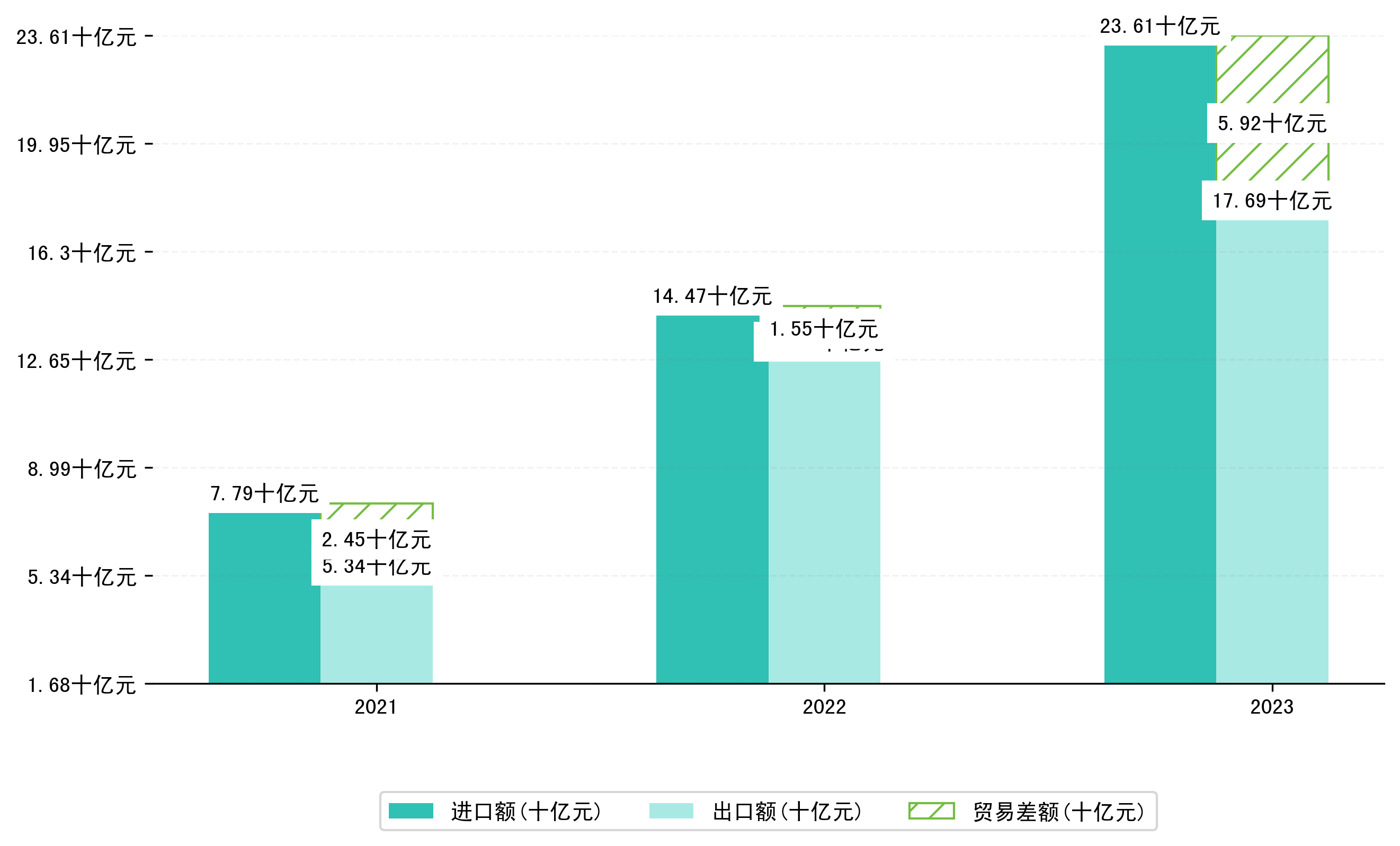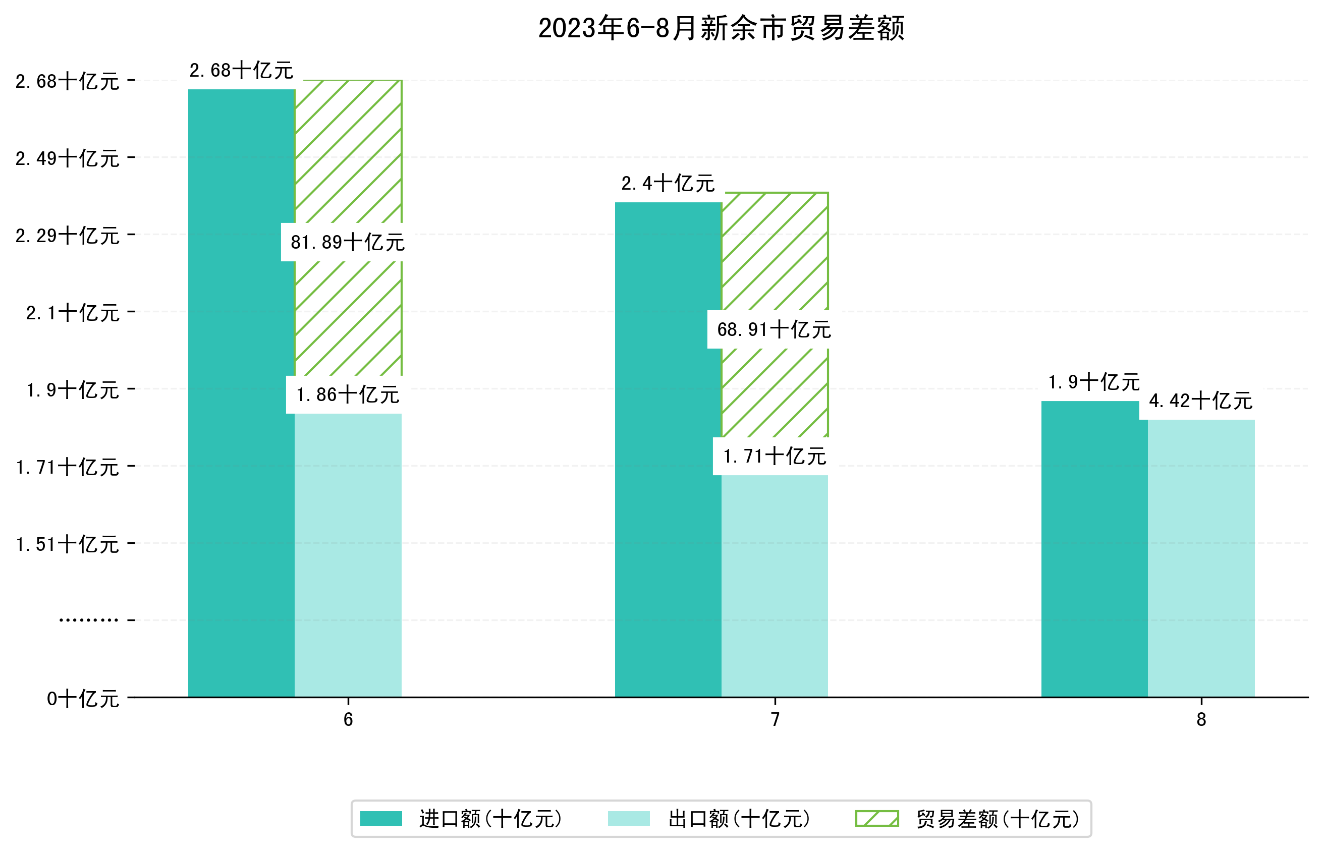 以美元计,2023年1-8月新余市贸易差额为8,6304,3339万美元(贸易逆差),相比上年同期减少了6,1910,4275万美元,同比减少253.79%。