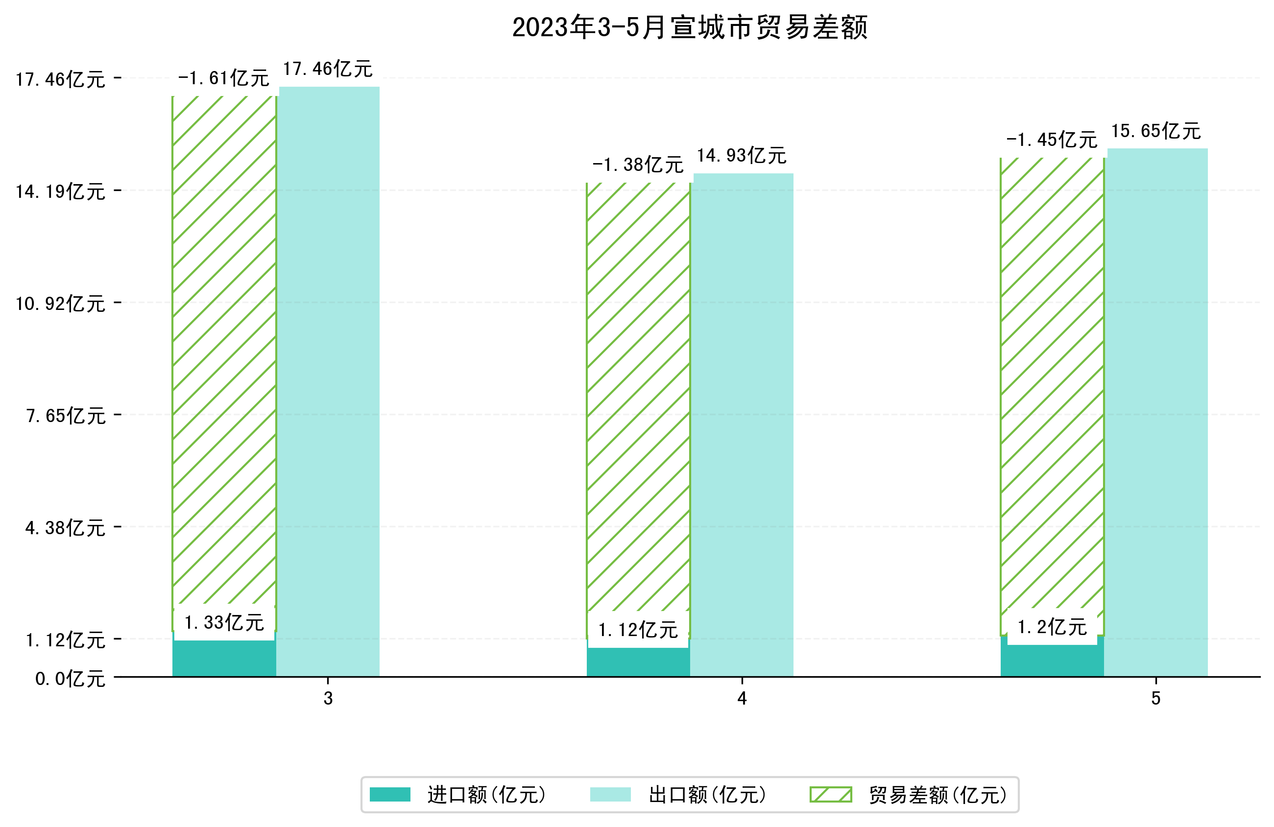 (图四:2023年3-5月宣城市贸易差额)
