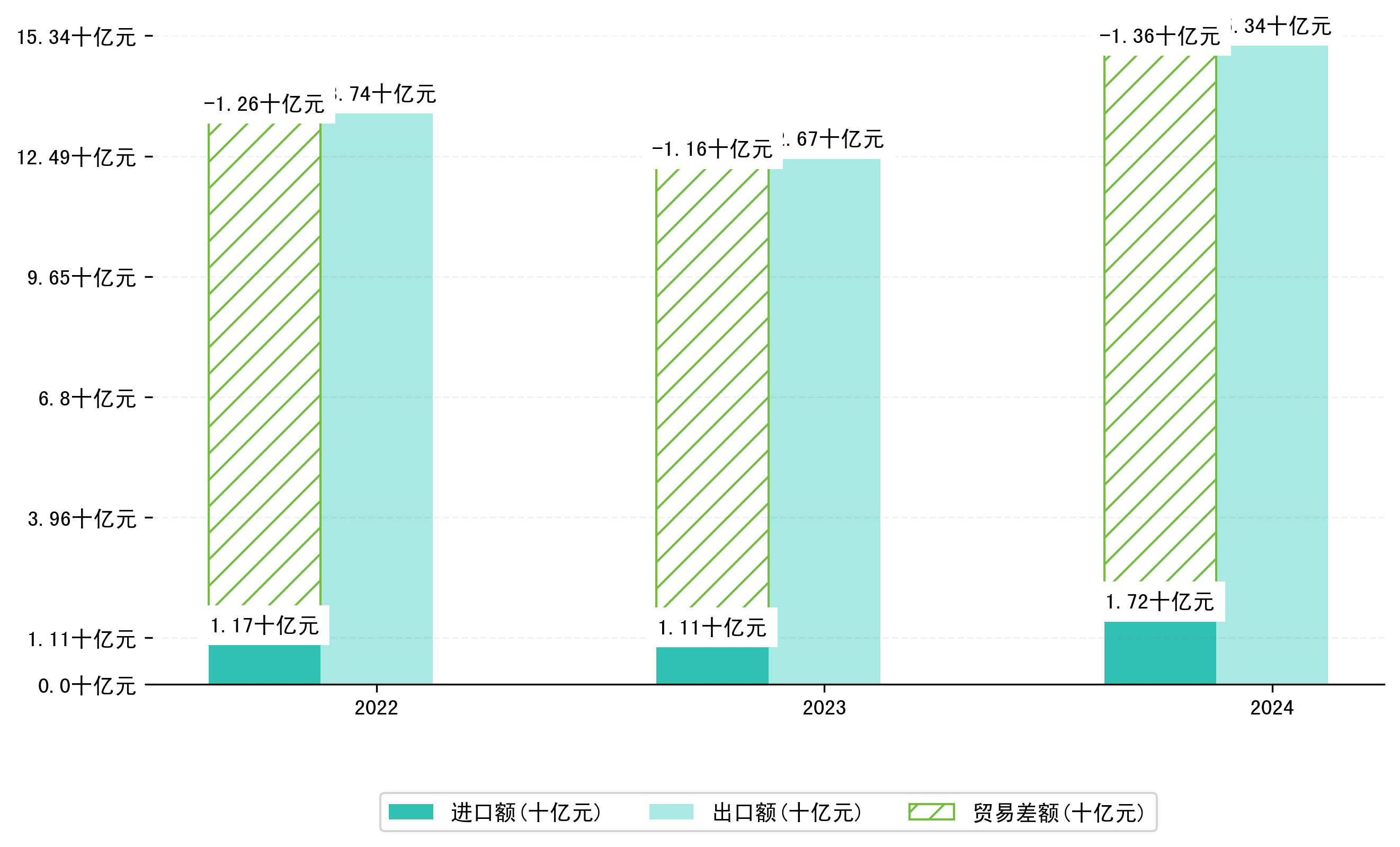 以美元计,2024年1-8月宣城市贸易差额为19,1554,1301万美元(贸易顺差),相比上年同期增加了2,5573,1034万美元,同比增加15.41%。