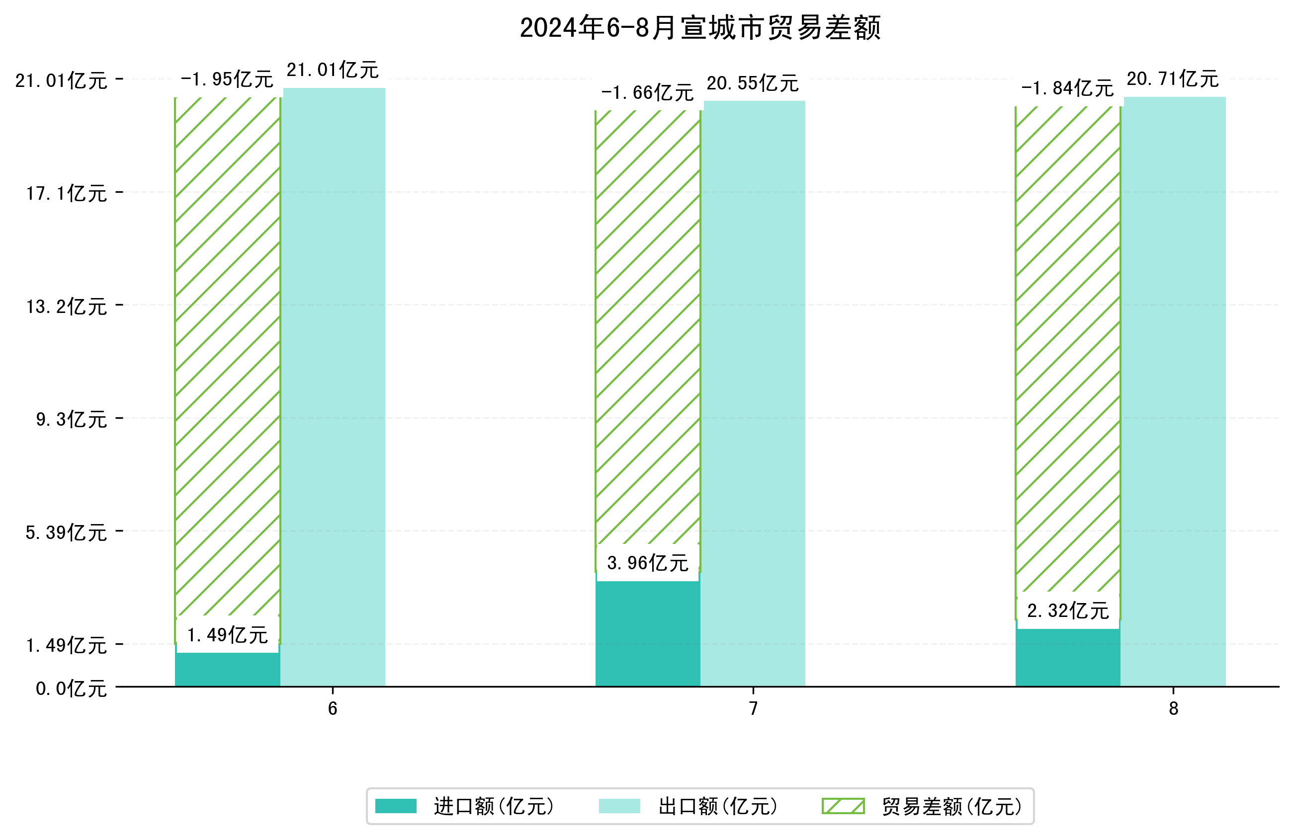 2024年8月宣城市进出口总额及进出口差额统计分析