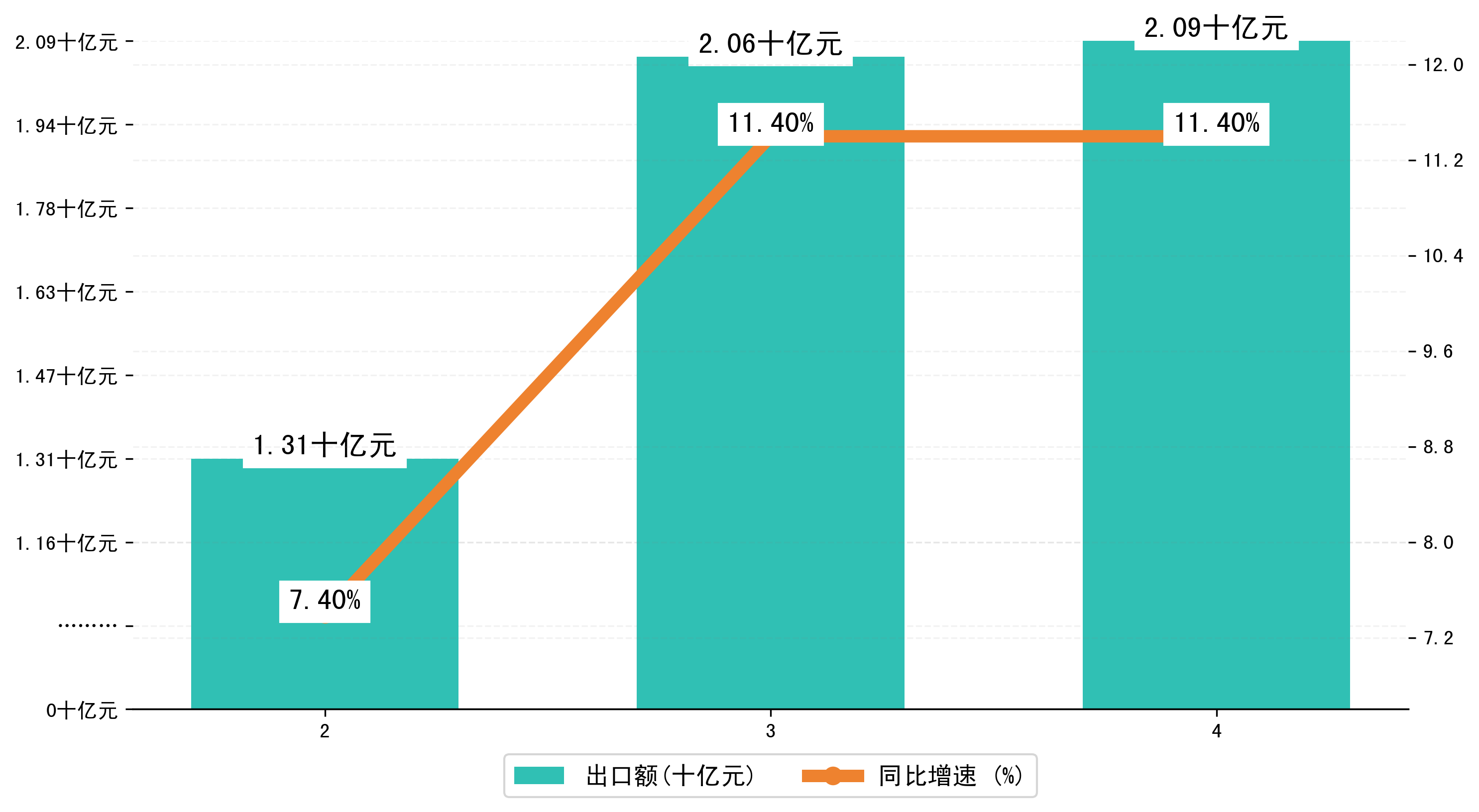 以人民币计,2025年4月宣城市出口额为20,9278.3297万元,相比上月增加了2966.9549万元;相比上年同期增加了2,1699.5636万元,同比增加了11.40%。
