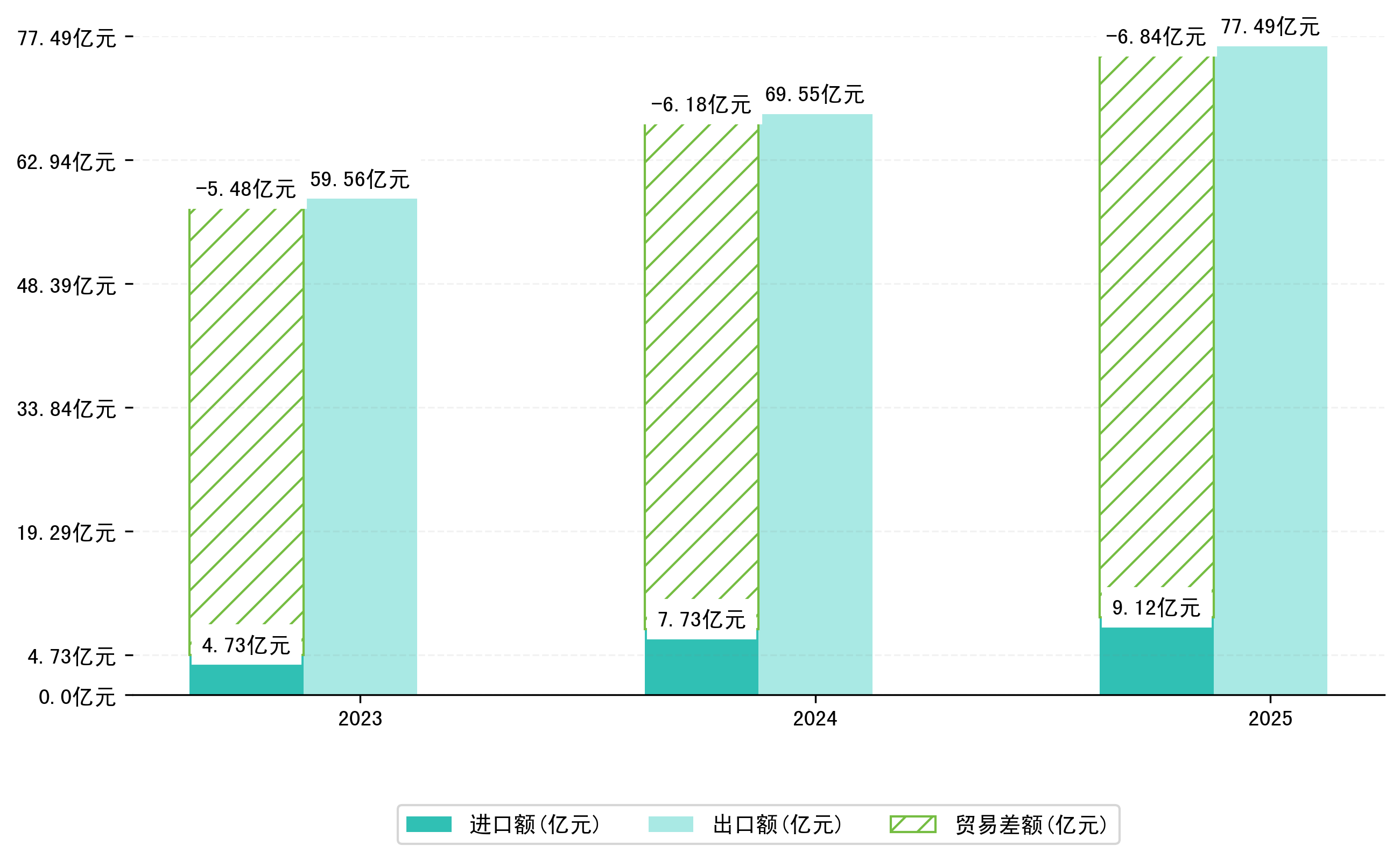 以人民币计,2025年1-4月宣城市贸易差额为68,3635,5966万元(贸易顺差),相比上年同期增加了6,5455,7325万元,同比增加10.59%。