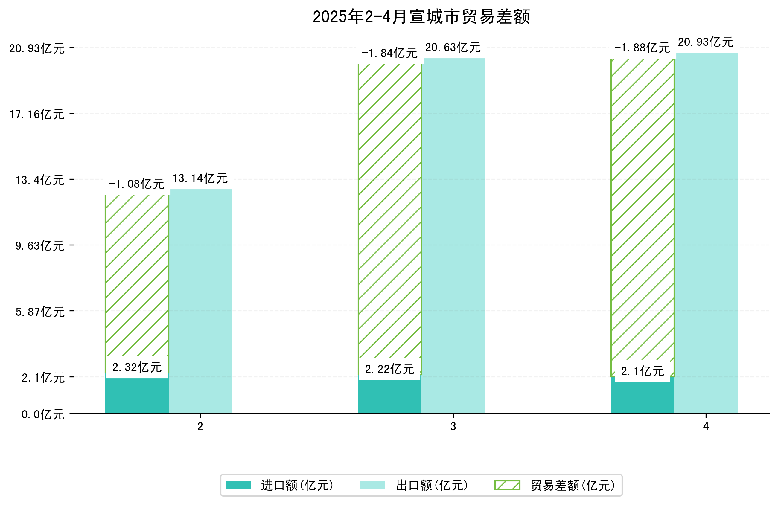 2025年4月宣城市进出口总额及进出口差额统计分析