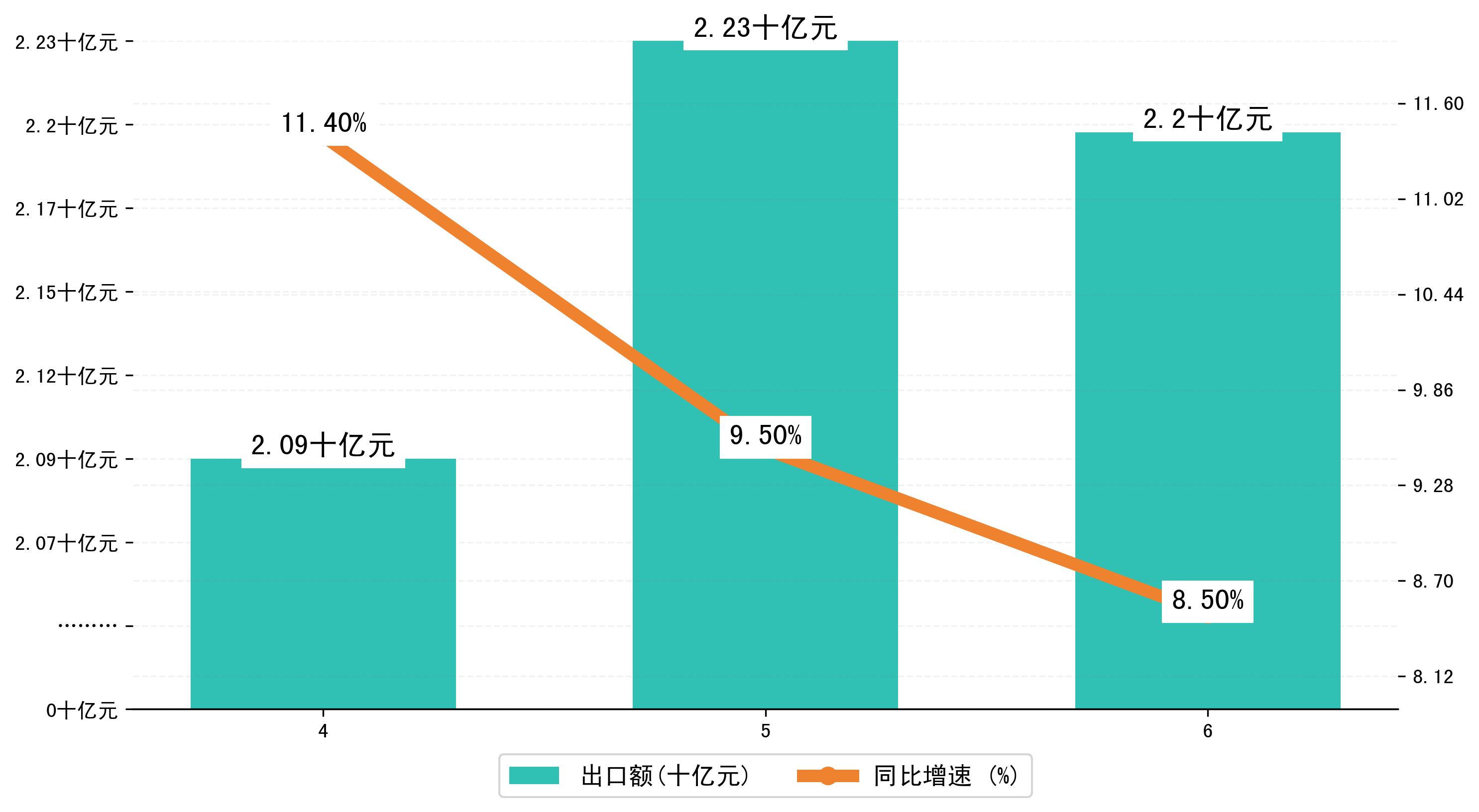 以人民币计,2025年6月宣城市出口额为21,9671.3624万元,相比上月减少了2907.1015万元;相比上年同期增加了9613.0987万元,同比增加了8.50%。