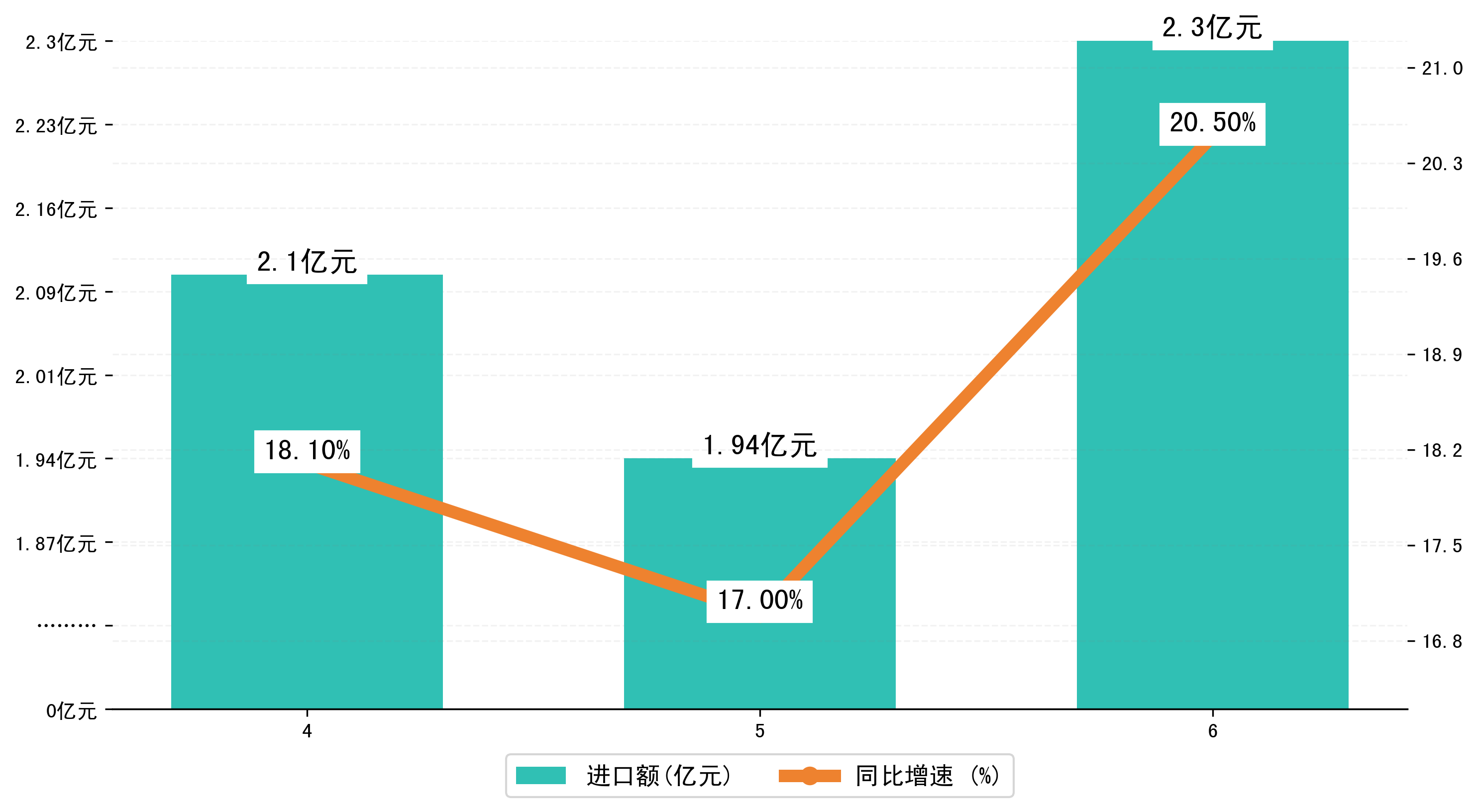 以人民币计,2025年6月宣城市进口额为2,3026.2315万元,相比上月增加了3622.5235万元;相比上年同期增加了8141.2747万元,同比增加了20.50%。