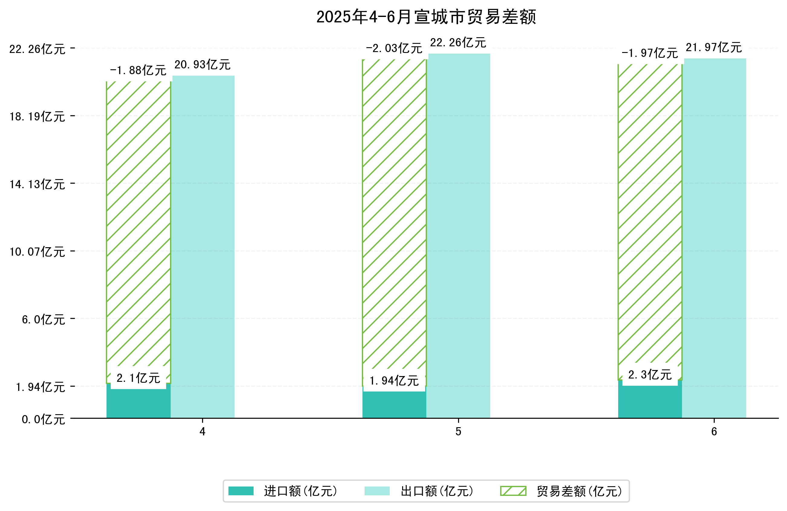 2025年6月宣城市进出口总额及进出口差额统计分析