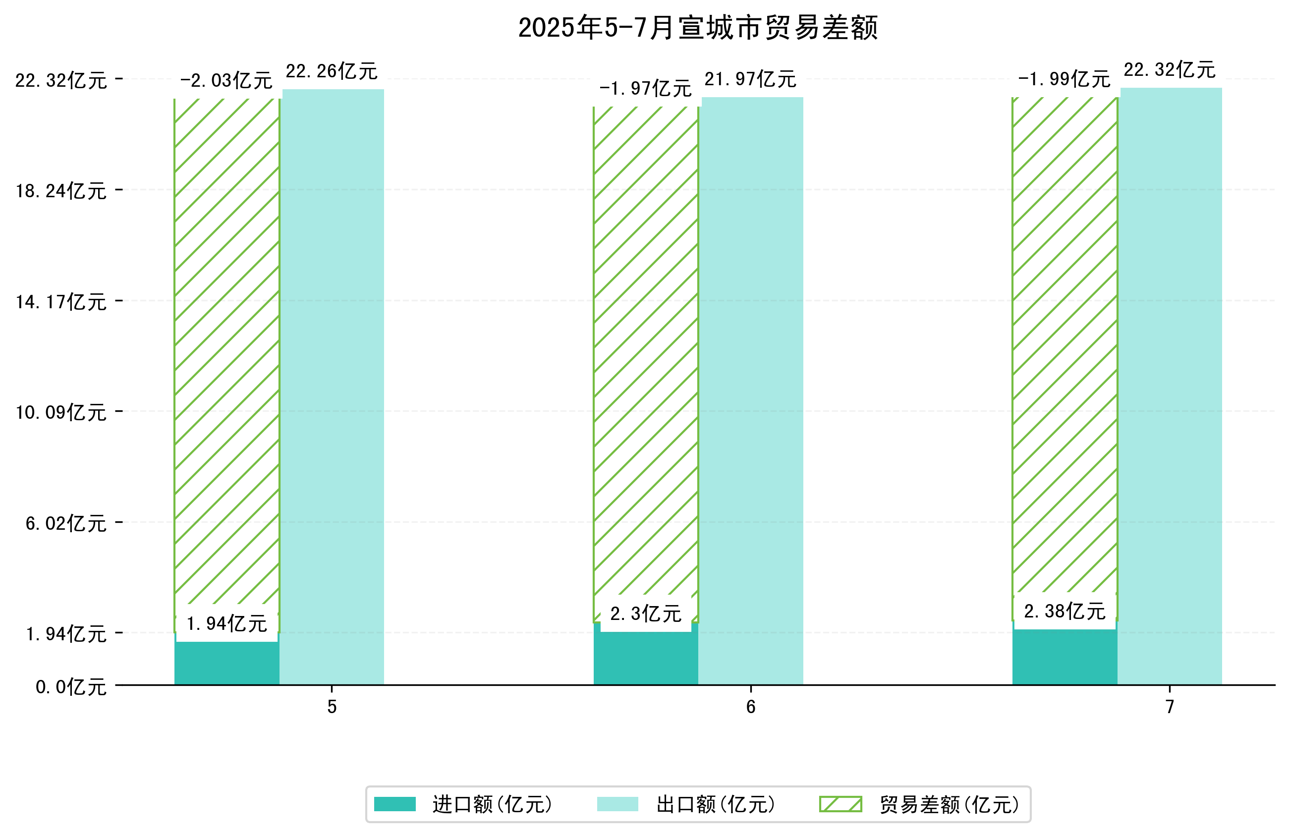 2025年7月宣城市进出口总额及进出口差额统计分析