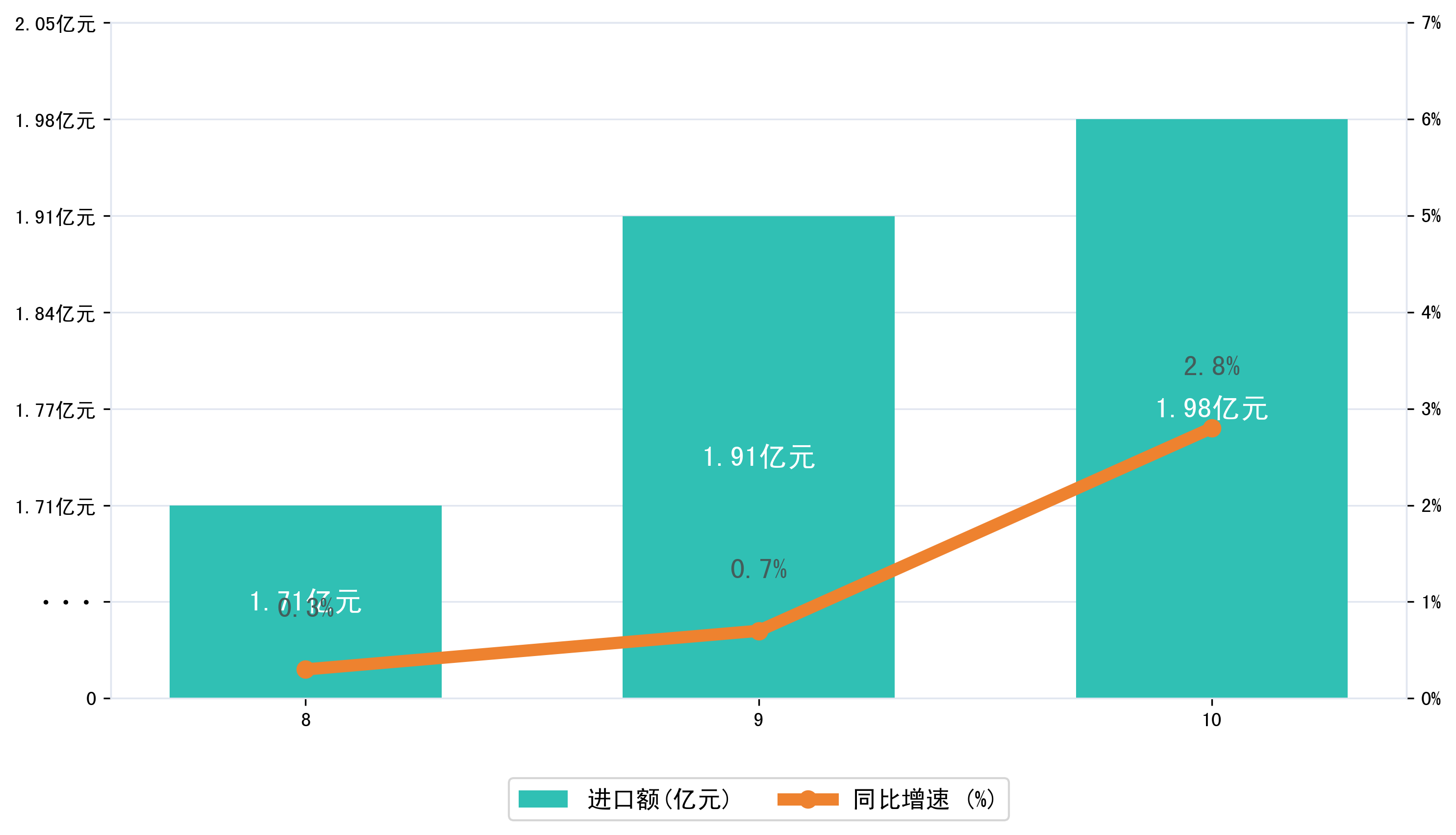以美元计,2025年1-10月宣城市进口额为2,9526.5102万美元,相比上年同期增加了561.4777万美元,同比增加1.90%。