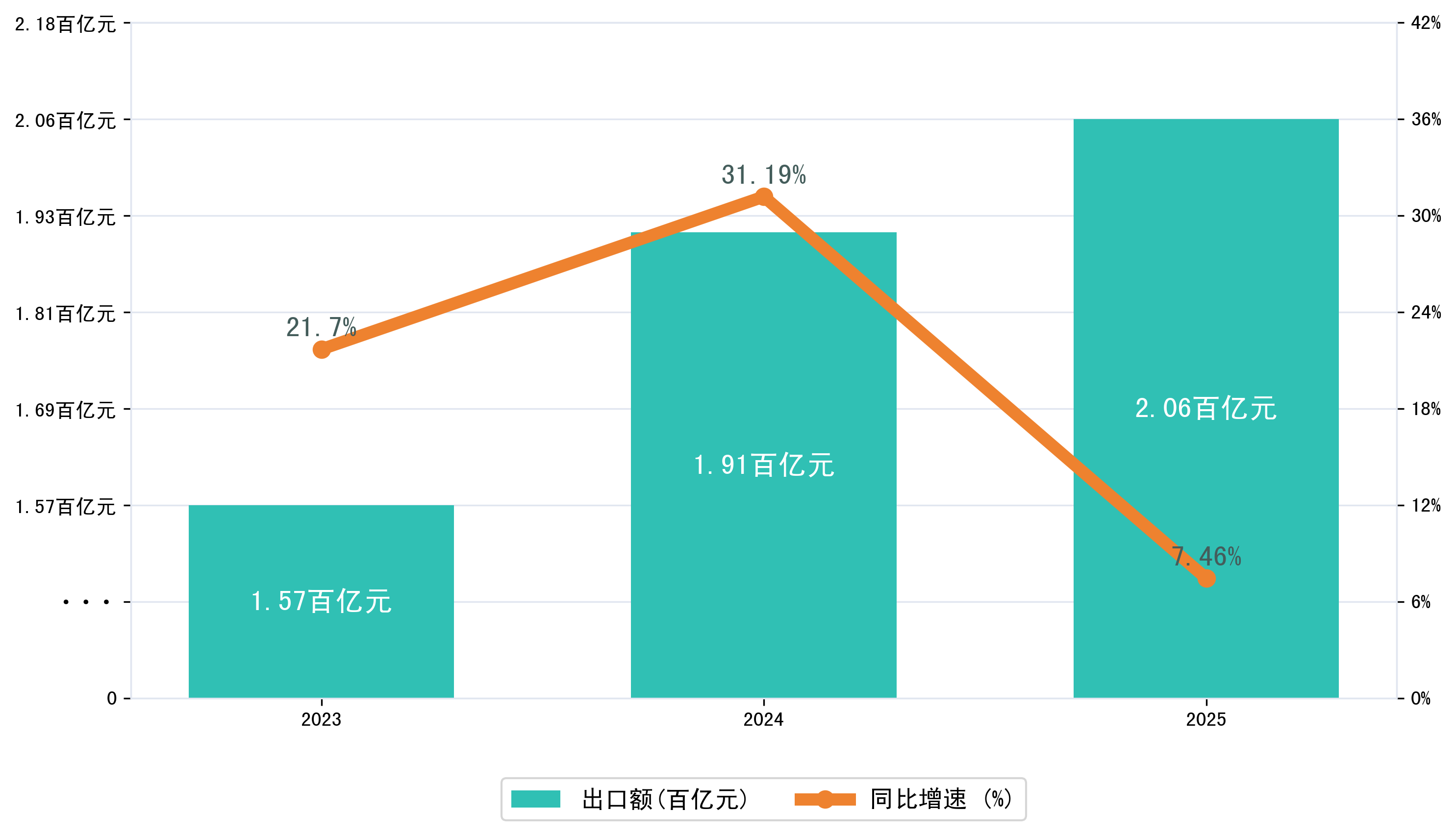 以人民币计,2025年1-10月宣城市出口额为205,6315.151万元,相比上年同期增加了14,2817.8128万元,同比增加了7.50%。