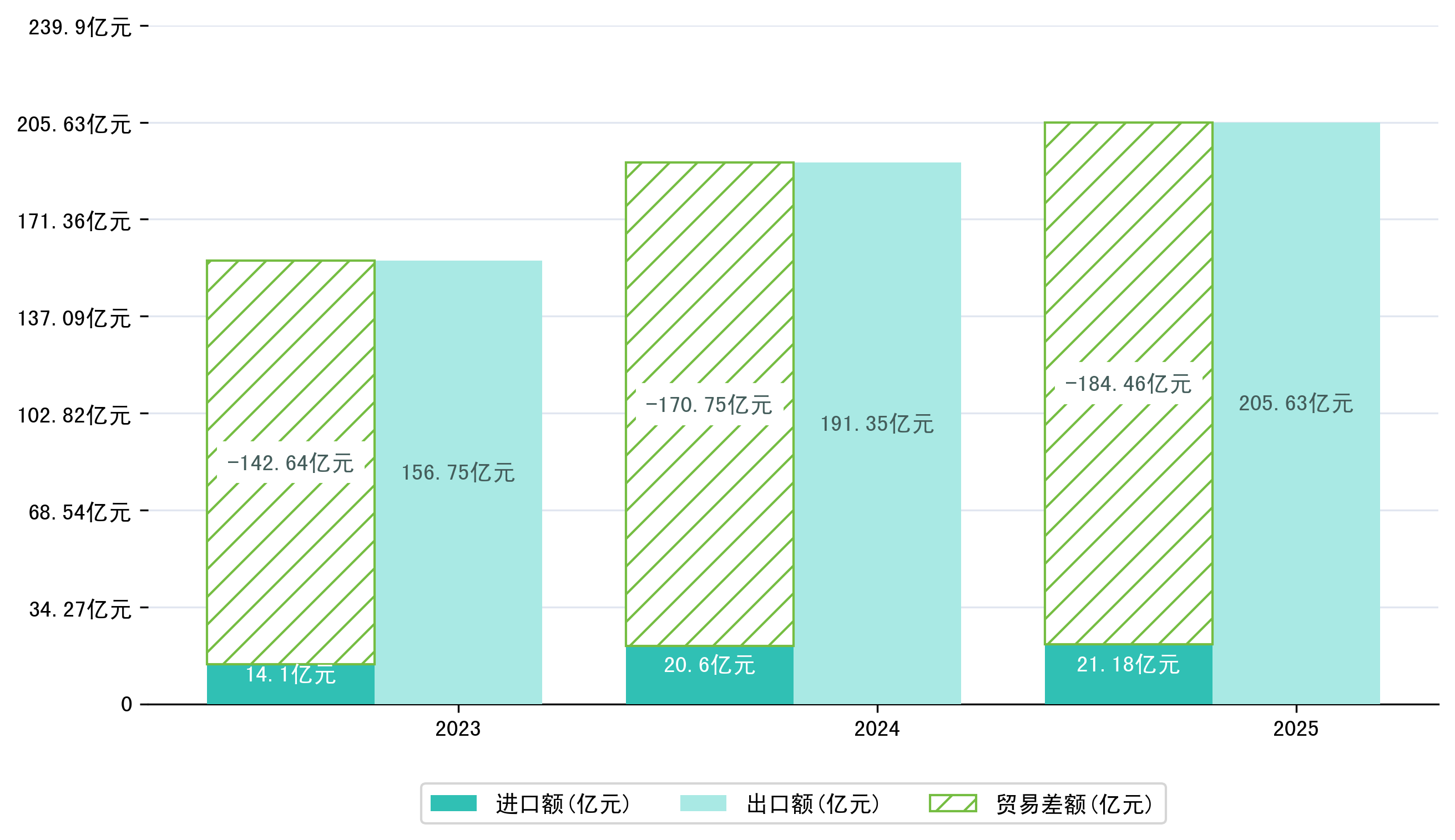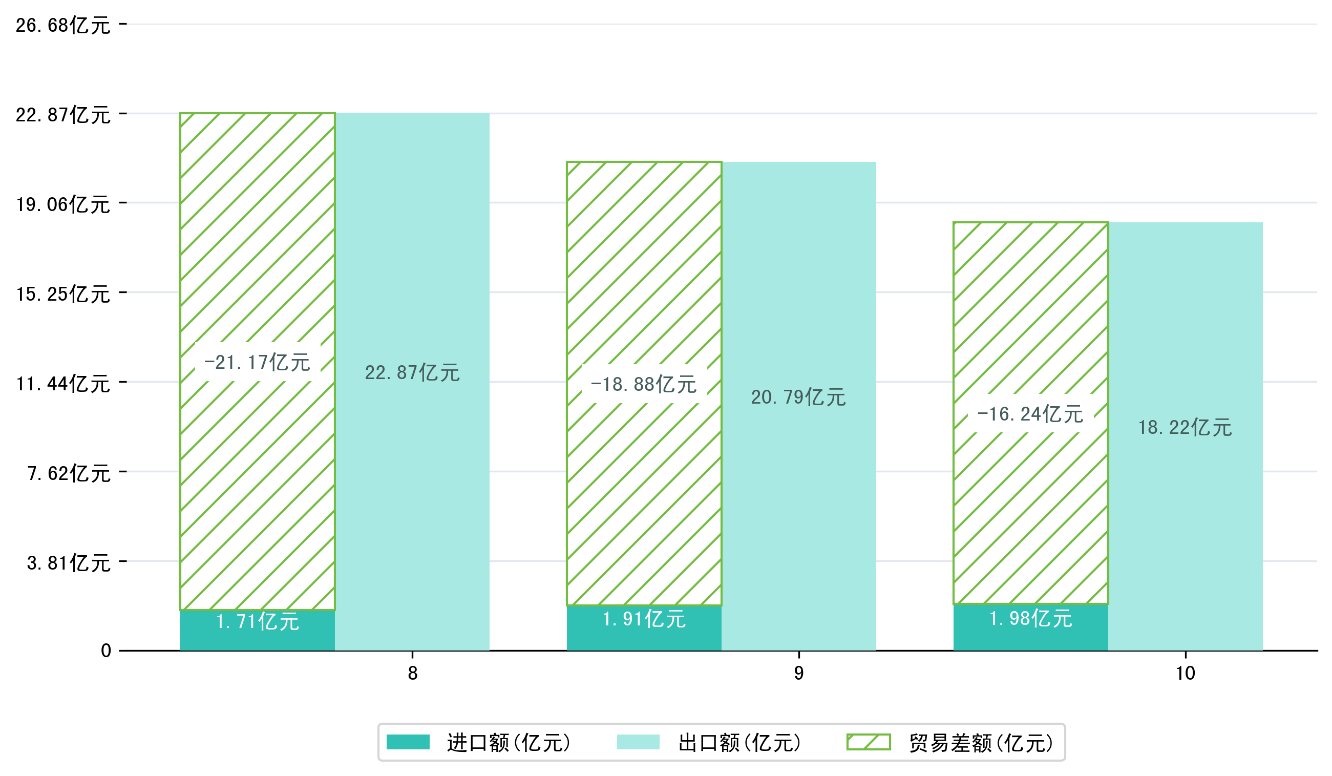 以人民币计,2025年1-10月宣城市贸易差额为184,4553,1812万元(贸易顺差),相比上年同期增加了13,7033,7938万元,同比增加8.03%。