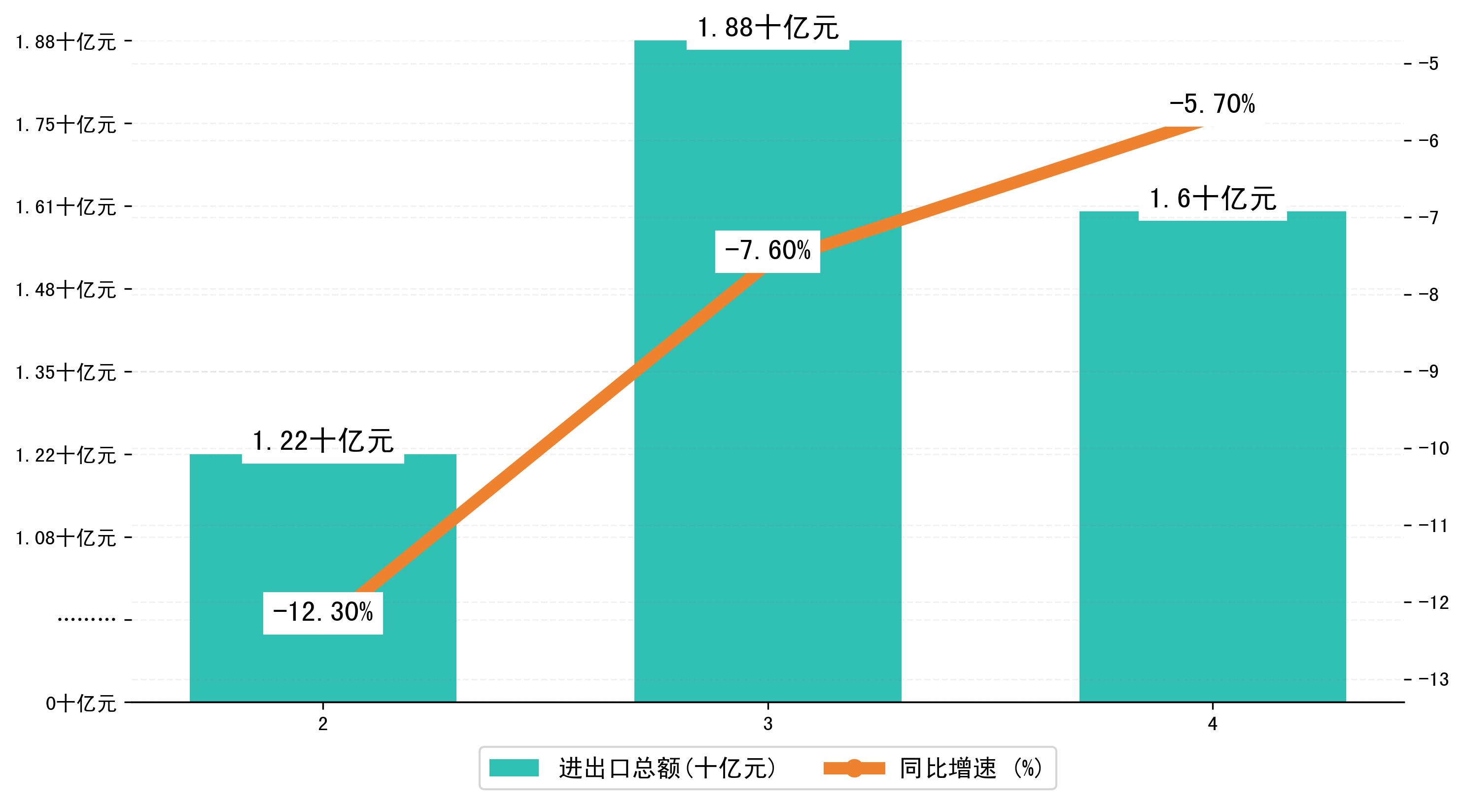 以人民币计,2023年4月宣城市进出口总额为16,0491.4468万元,相比上月减少了2,7358.9223万元;相比上年同期增加了1388.5191万元,同比减少了-5.70%。
