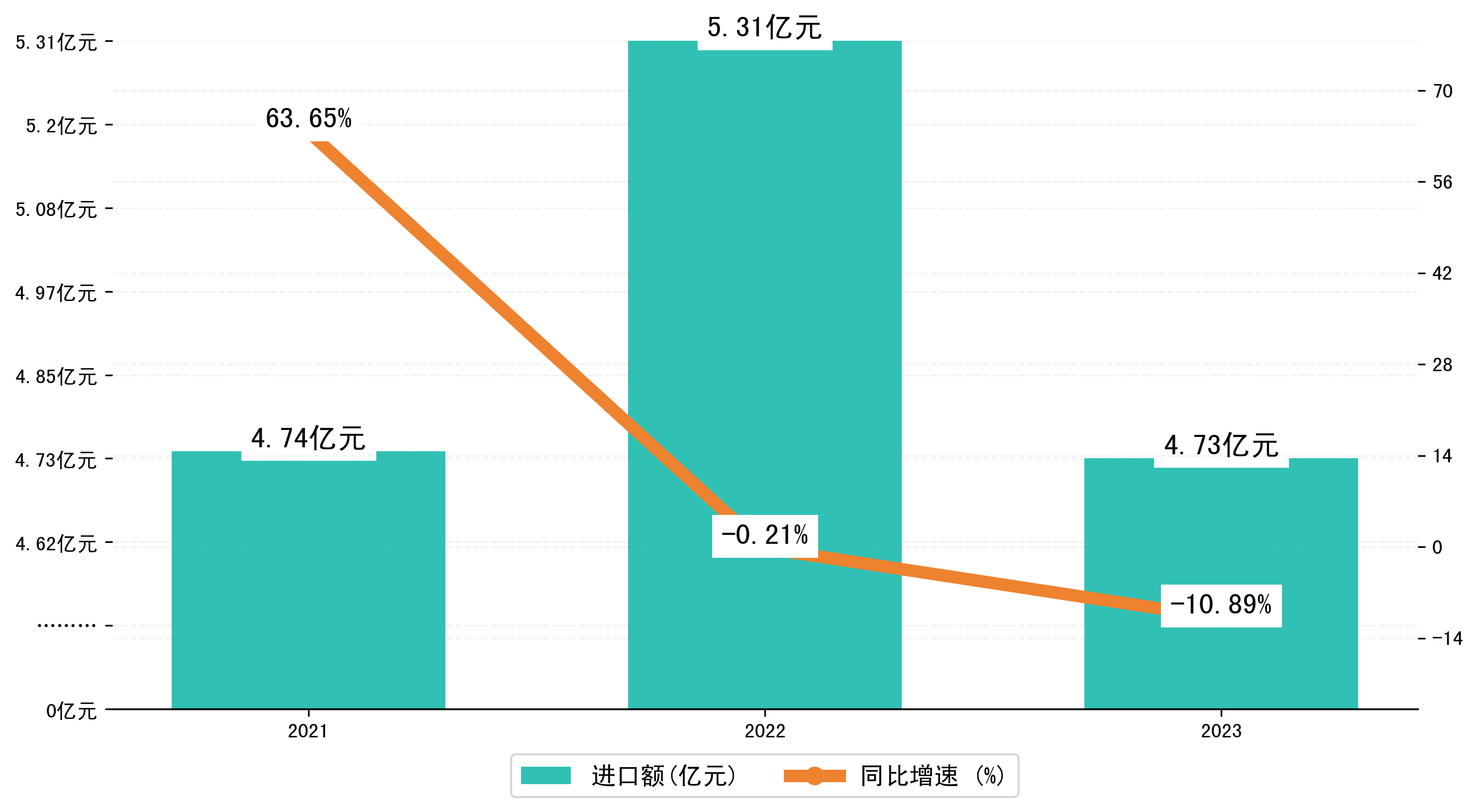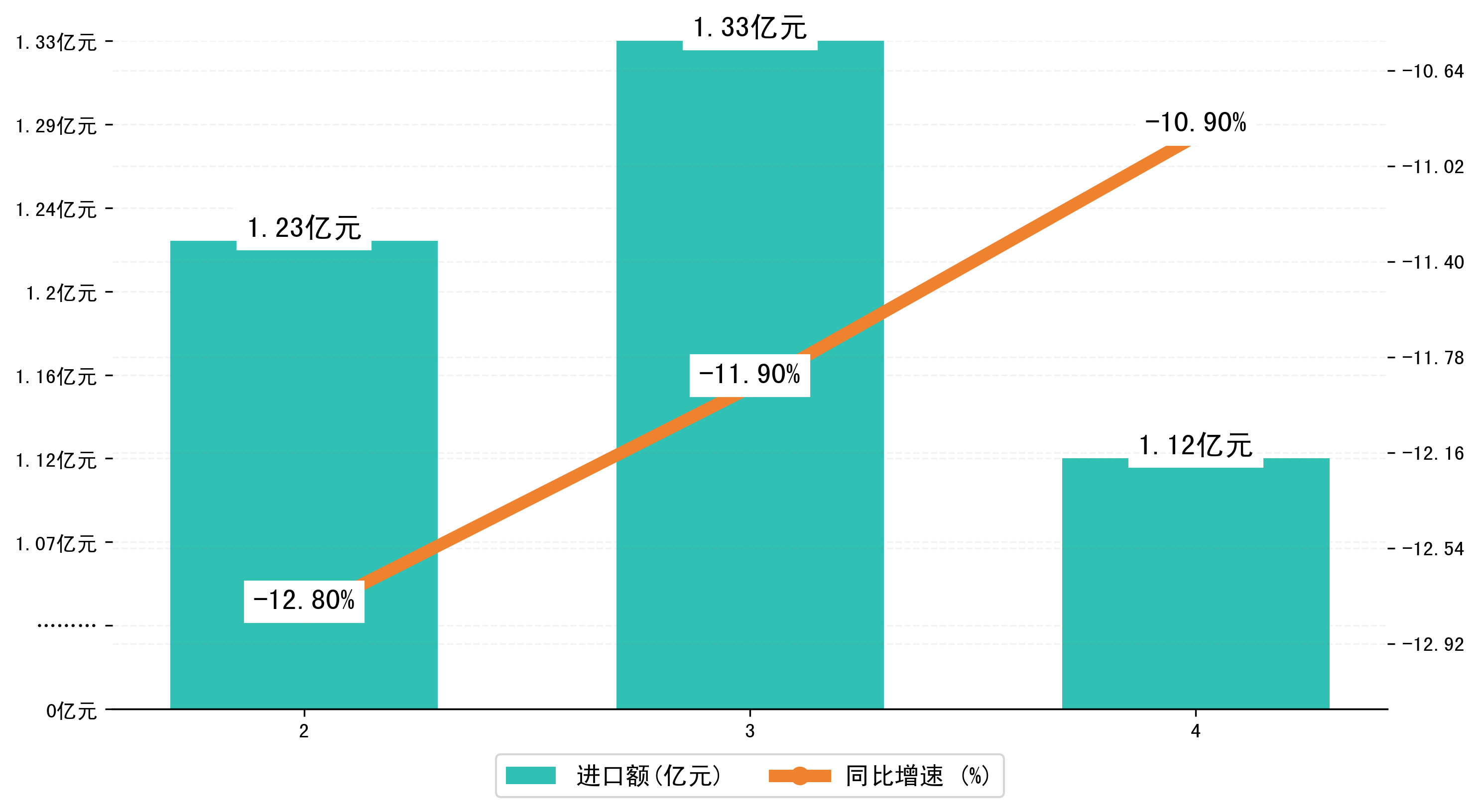 以人民币计,2023年1-4月宣城市进口额为4,7346.0994万元,相比上年同期减少了5788.1928万元,同比减少了-10.90%。