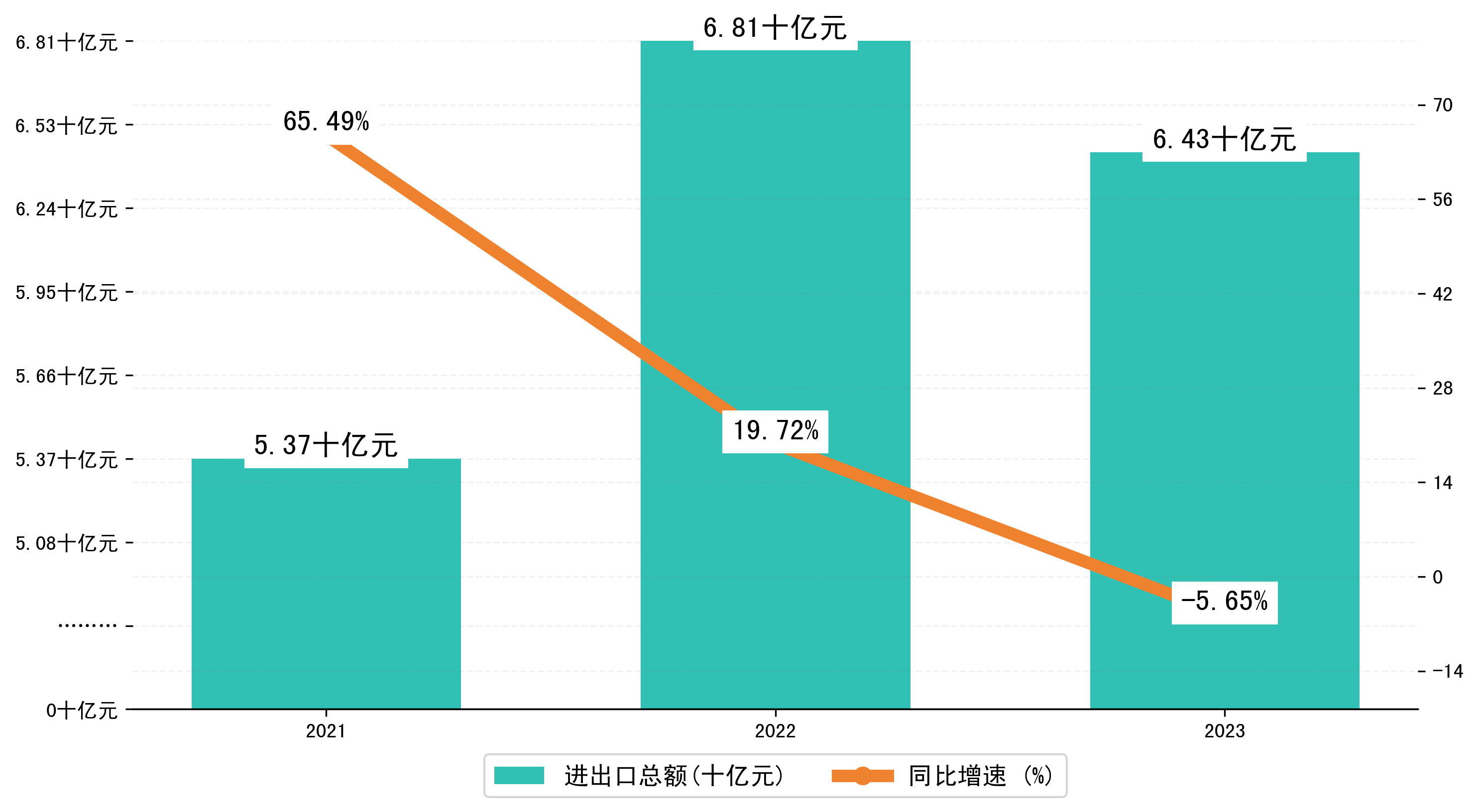 以人民币计,2023年1-4月宣城市进出口总额为64,2985.8652万元,相比上年同期减少了3,8502.3513万元,同比减少了-5.70%。