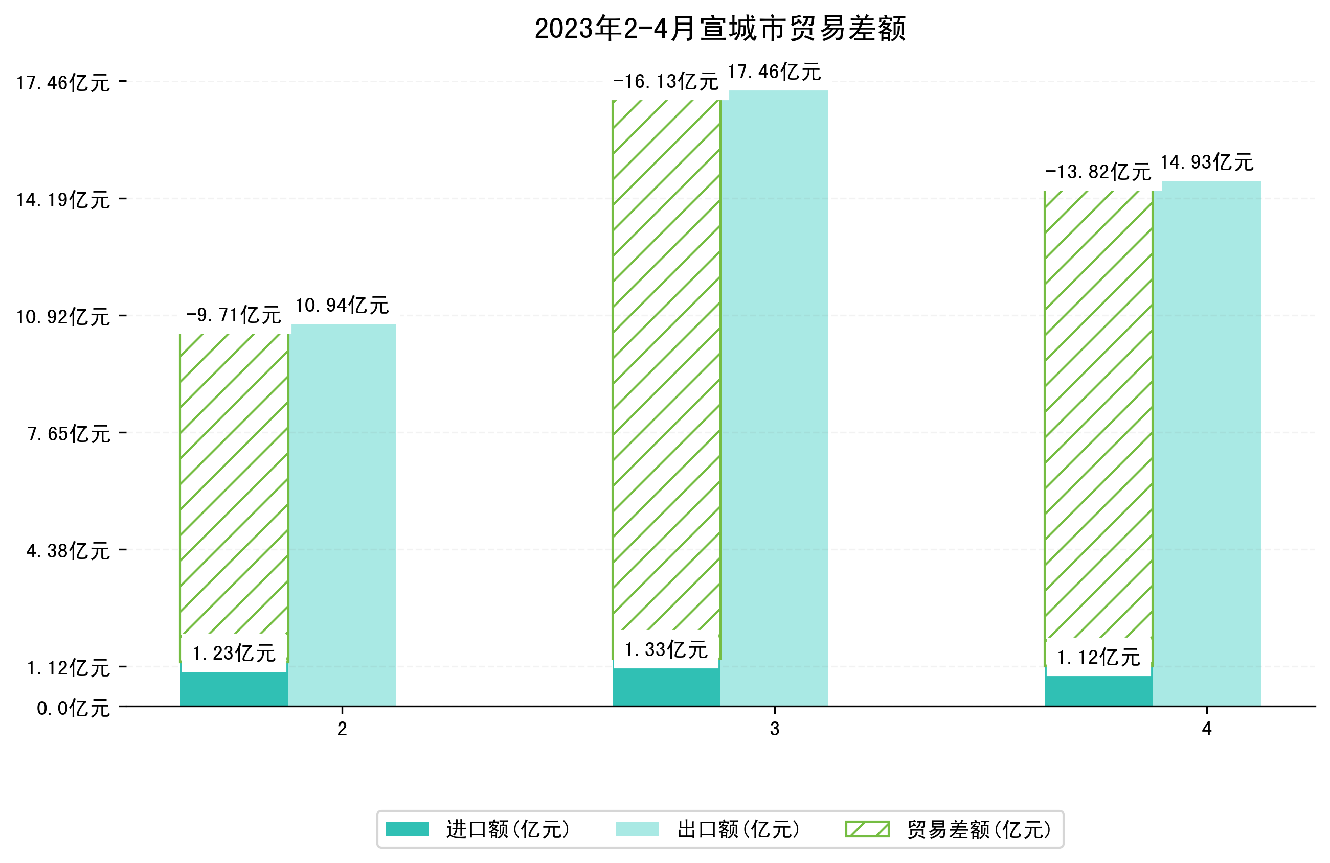 2023年4月宣城市进出口总额及进出口差额统计分析