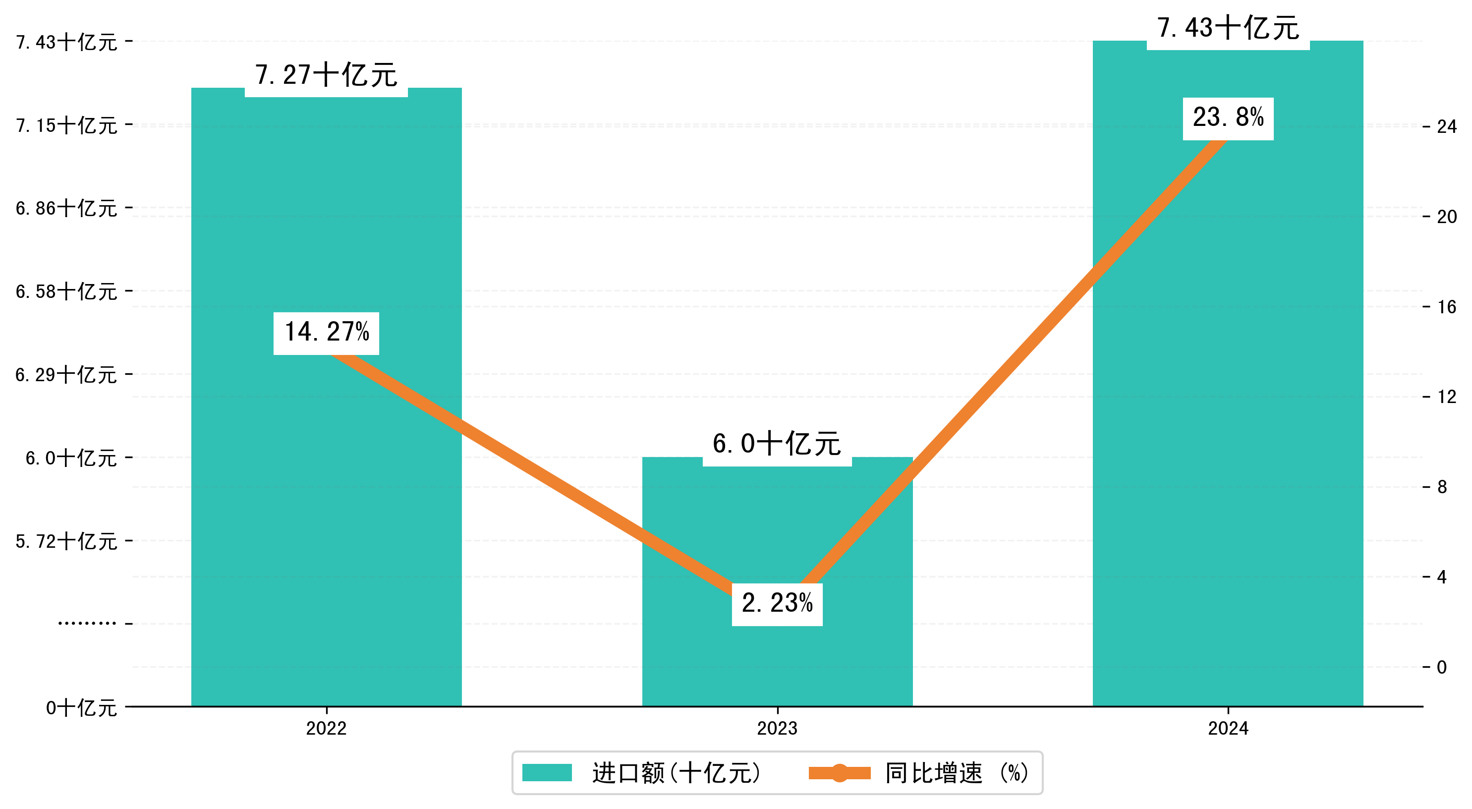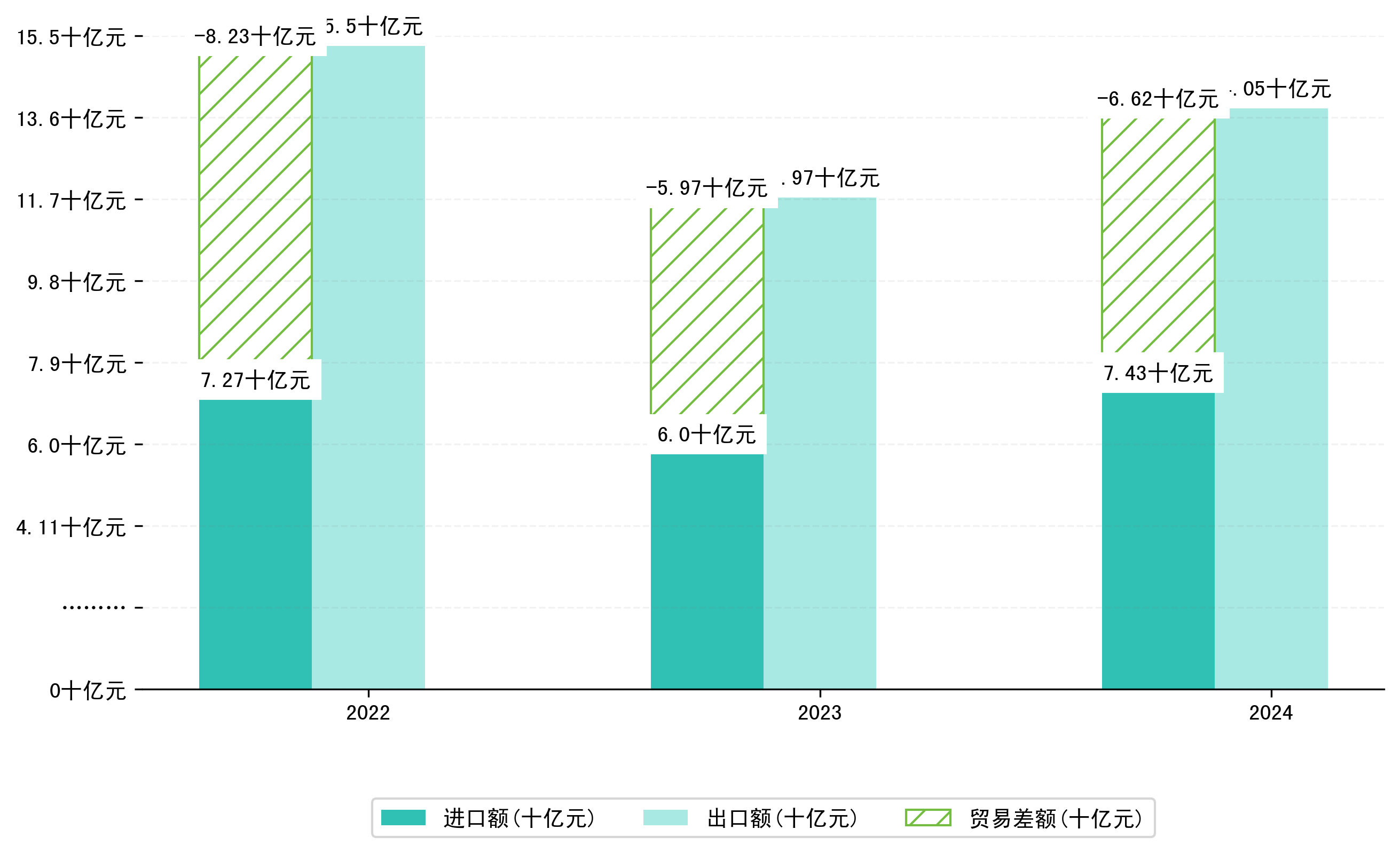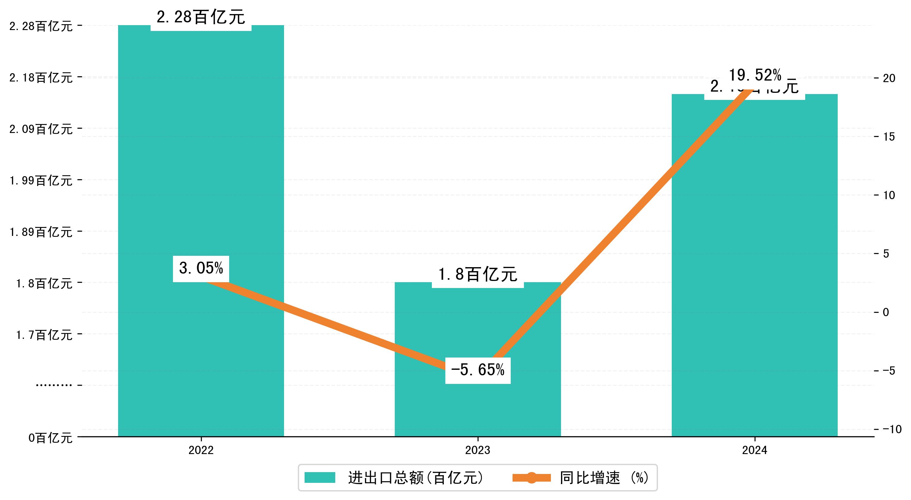 以美元计,2024年1-10月阳江市进口额为10,4508.2531万美元,相比上年同期增加了1,8935.9873万美元,同比增加22.80%。