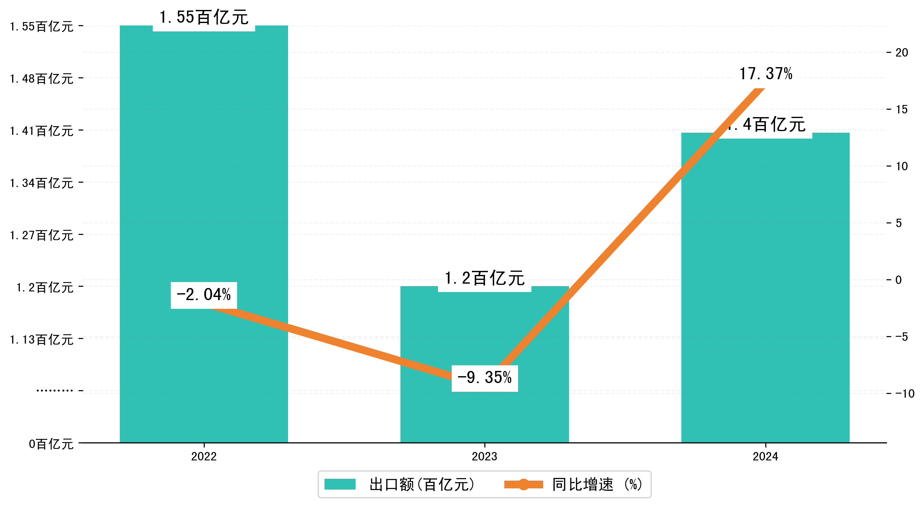 以人民币计,2024年1-10月阳江市出口额为140,4932.3422万元,相比上年同期增加了20,7916.1591万元,同比增加了17.40%。