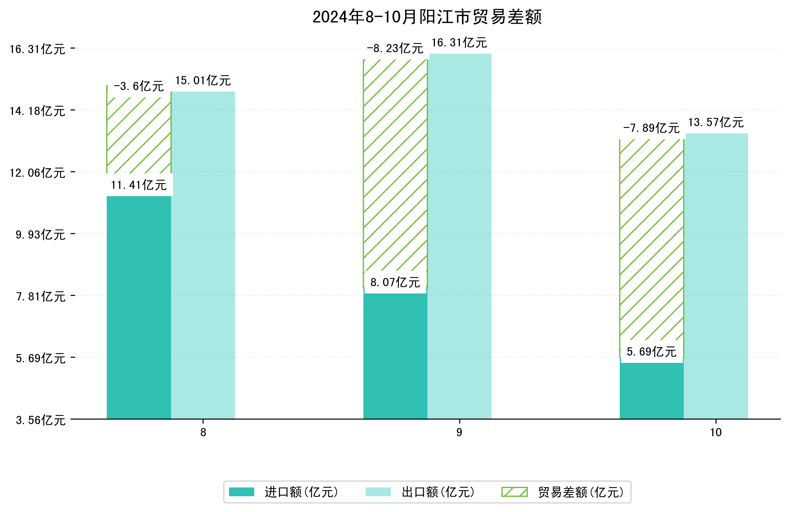 2024年10月阳江市进出口总额及进出口差额统计分析