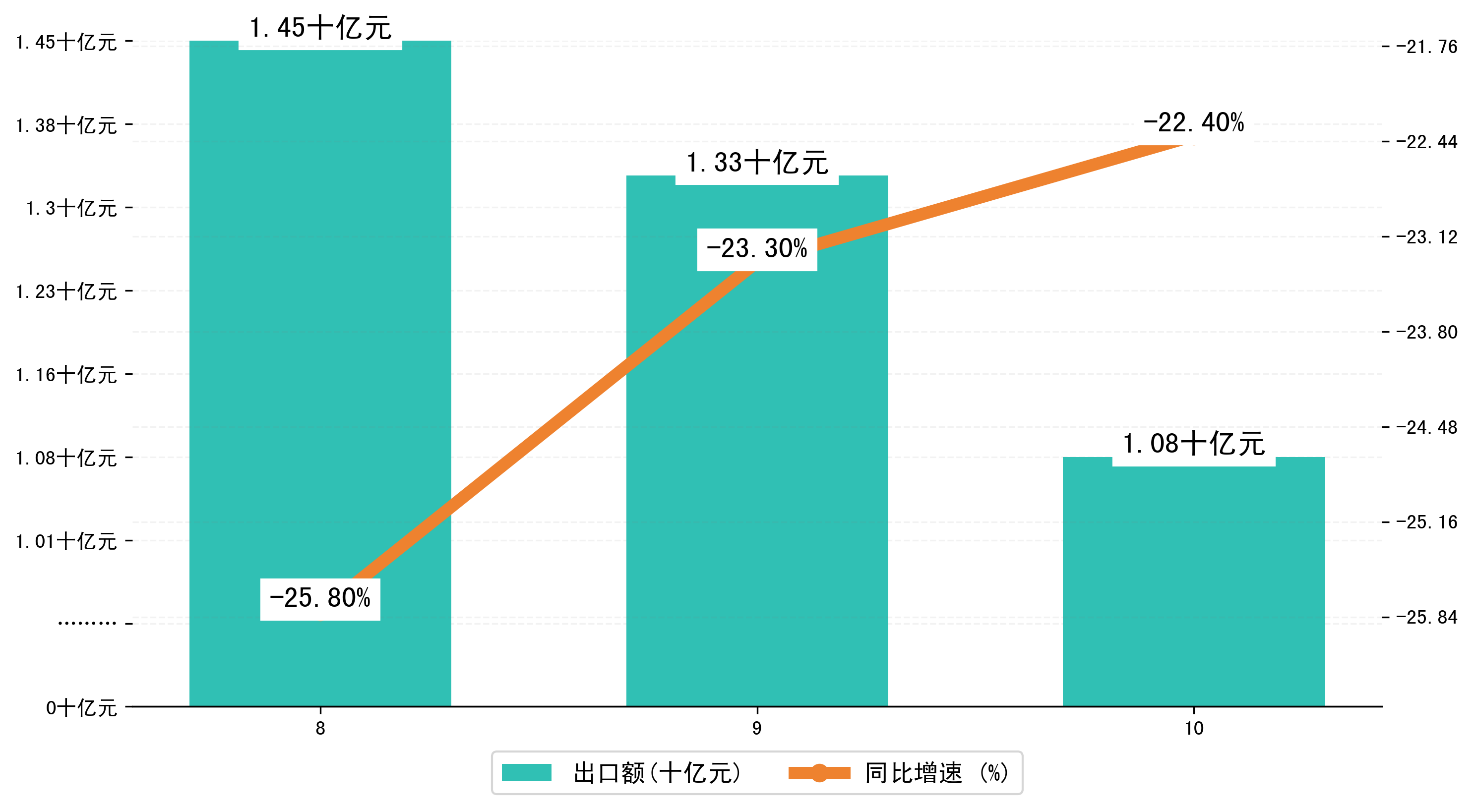 以人民币计,2023年10月阳江市出口额为10,8167.6563万元,相比上月减少了2,4826.9166万元;相比上年同期减少了2,3005.7263万元,同比减少了-22.40%。