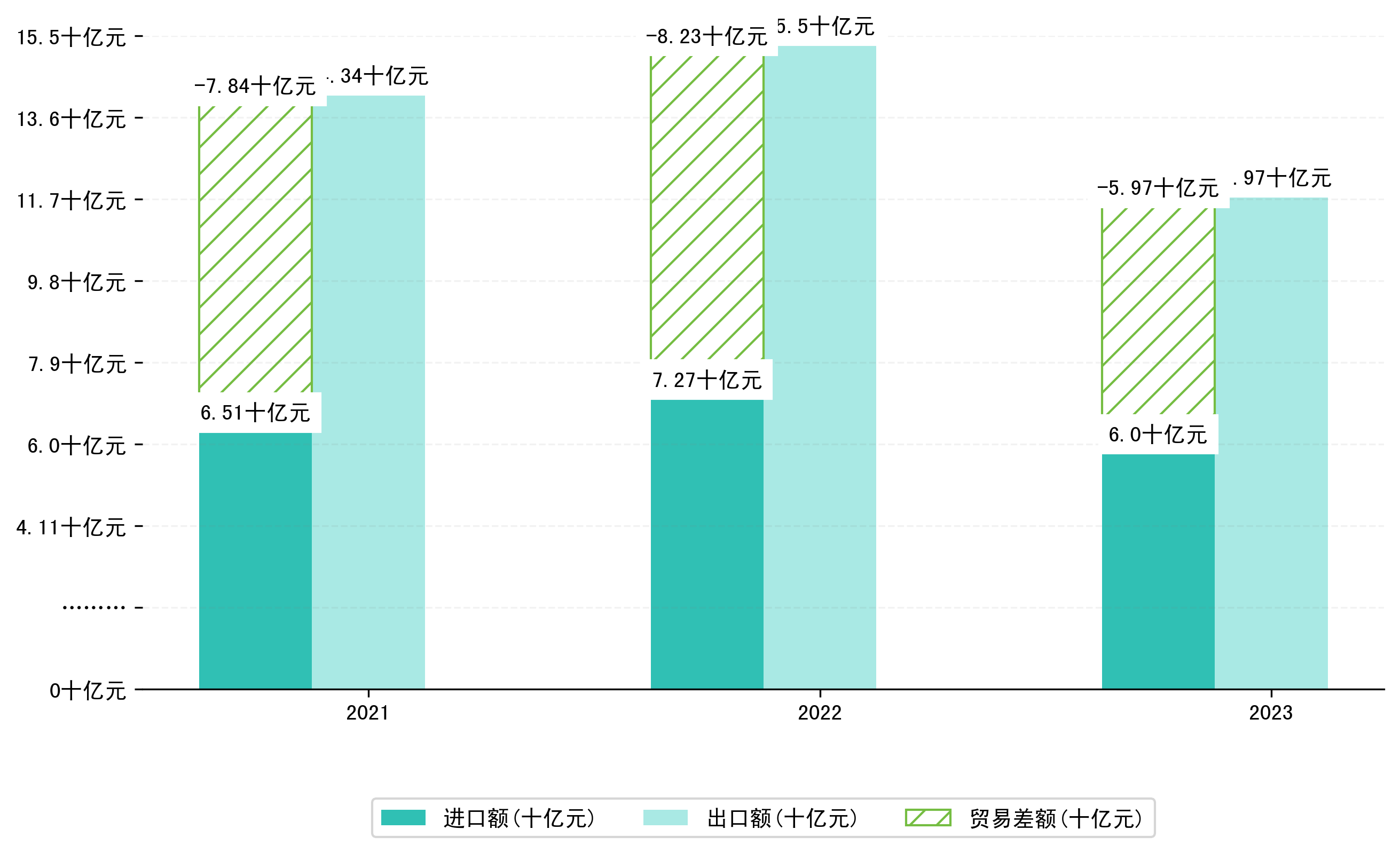 以美元计,2023年1-10月阳江市贸易差额为8,5275,3761万美元(贸易顺差),相比上年同期减少了4,0099,2511万美元,同比减少-31.98%。