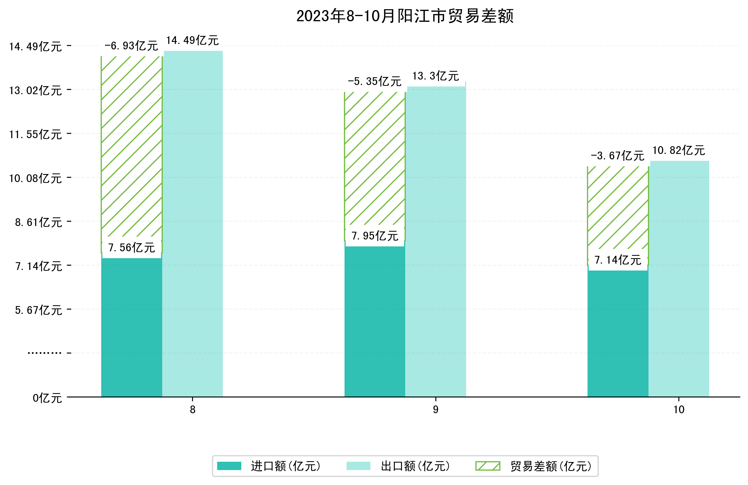 2023年10月阳江市进出口总额及进出口差额统计分析