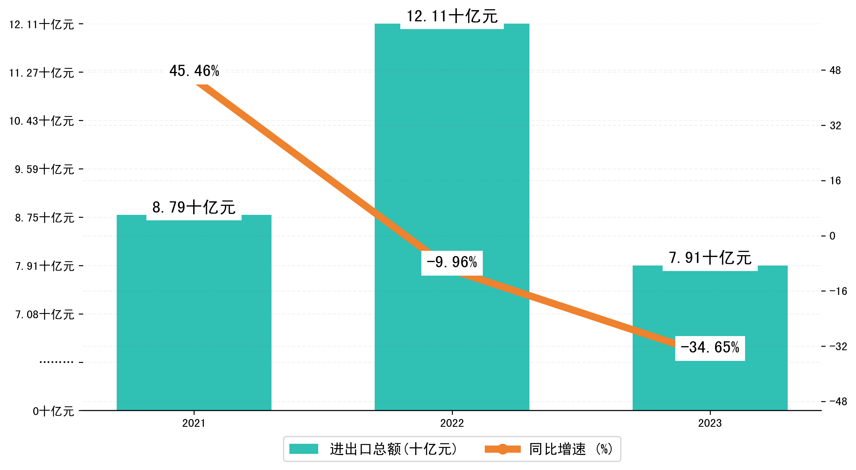 以人民币计,2023年1-5月阳江市进出口总额为79,1482.5202万元,相比上年同期减少了41,9605.1099万元,同比减少了-34.80%。