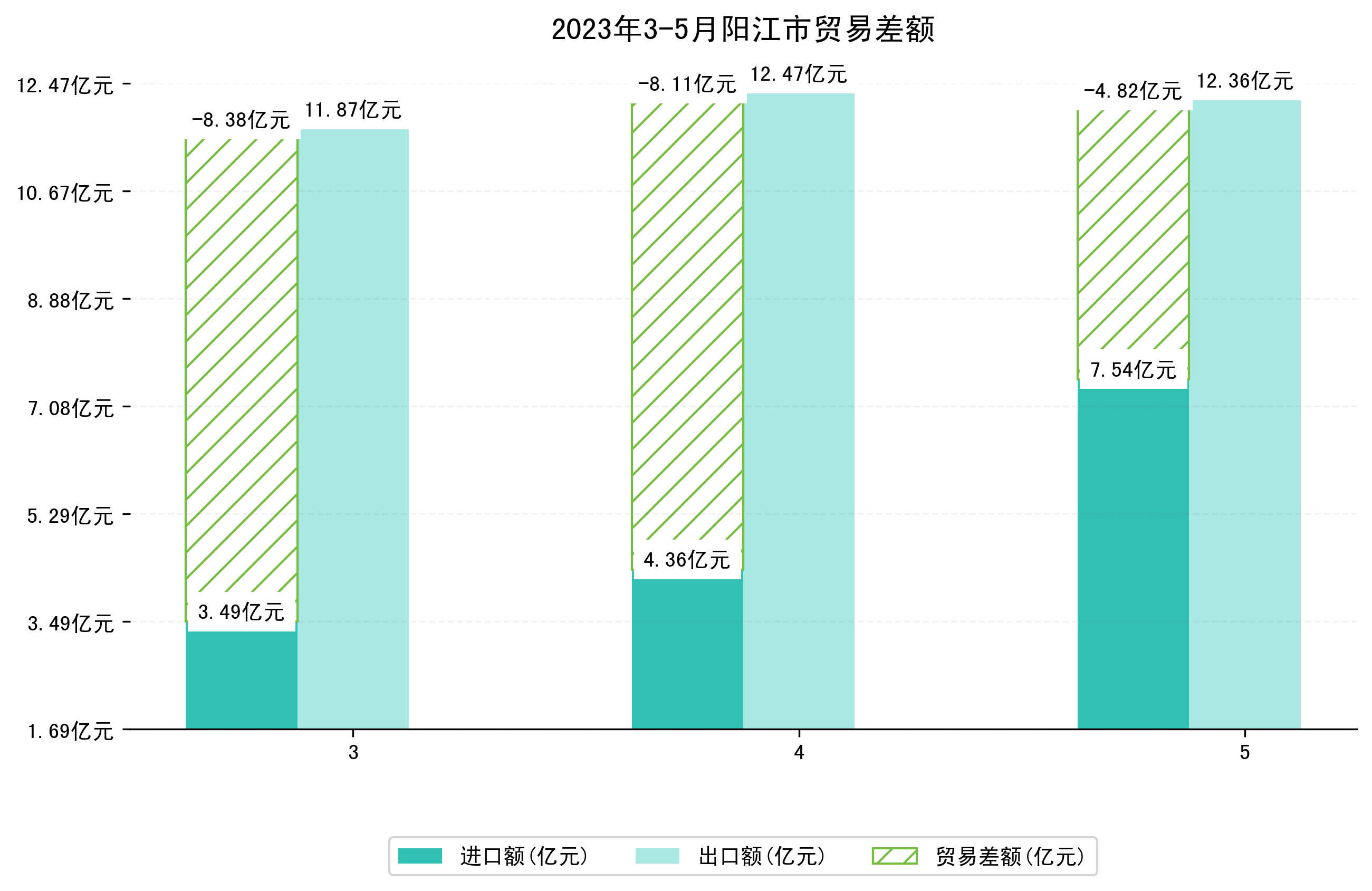 2023年5月阳江市进出口总额及进出口差额统计分析