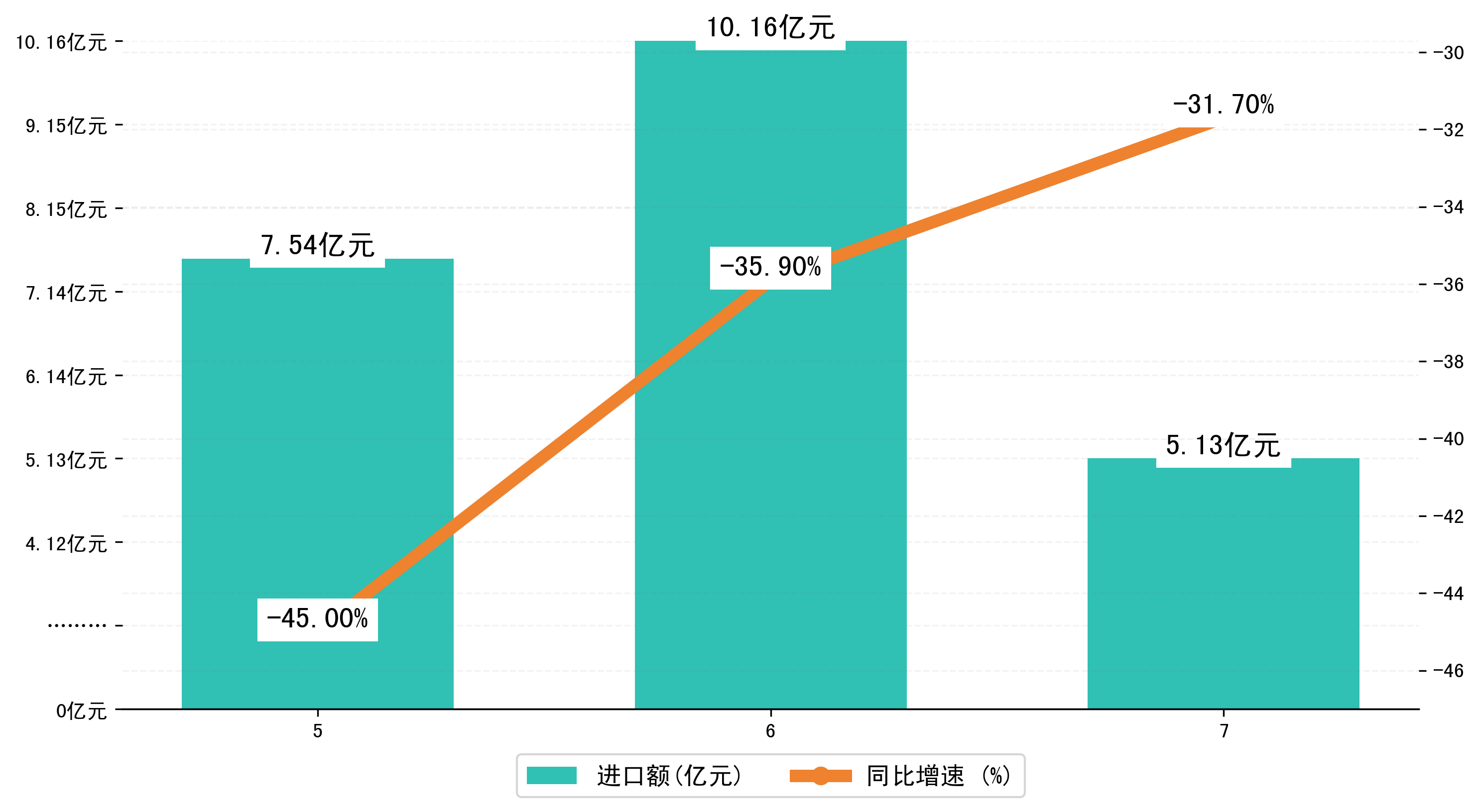 (图三:2023年5-7月阳江市进口额)