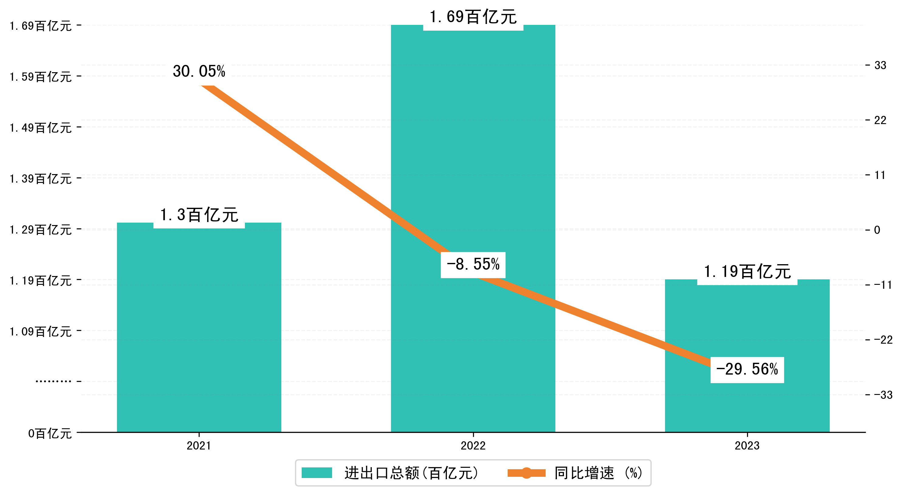 以人民币计,2023年1-7月阳江市进出口总额为118,7947.1726万元,相比上年同期减少了49,8472.8641万元,同比减少了-29.30%。
