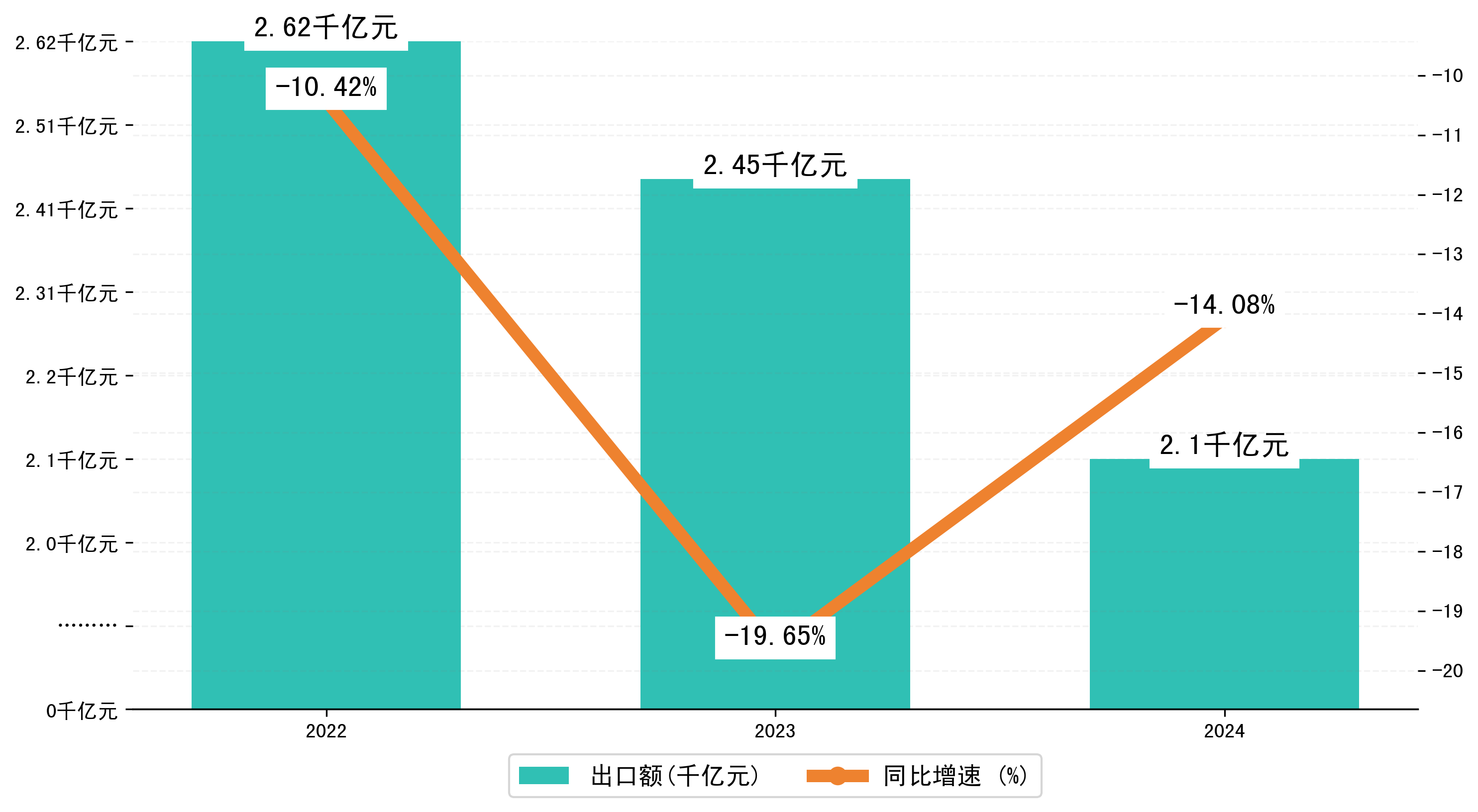 以人民币计,2024年1-9月郑州市出口额为2101,8082.879万元,相比上年同期减少了344,4511.93万元,同比减少了-14.10%。