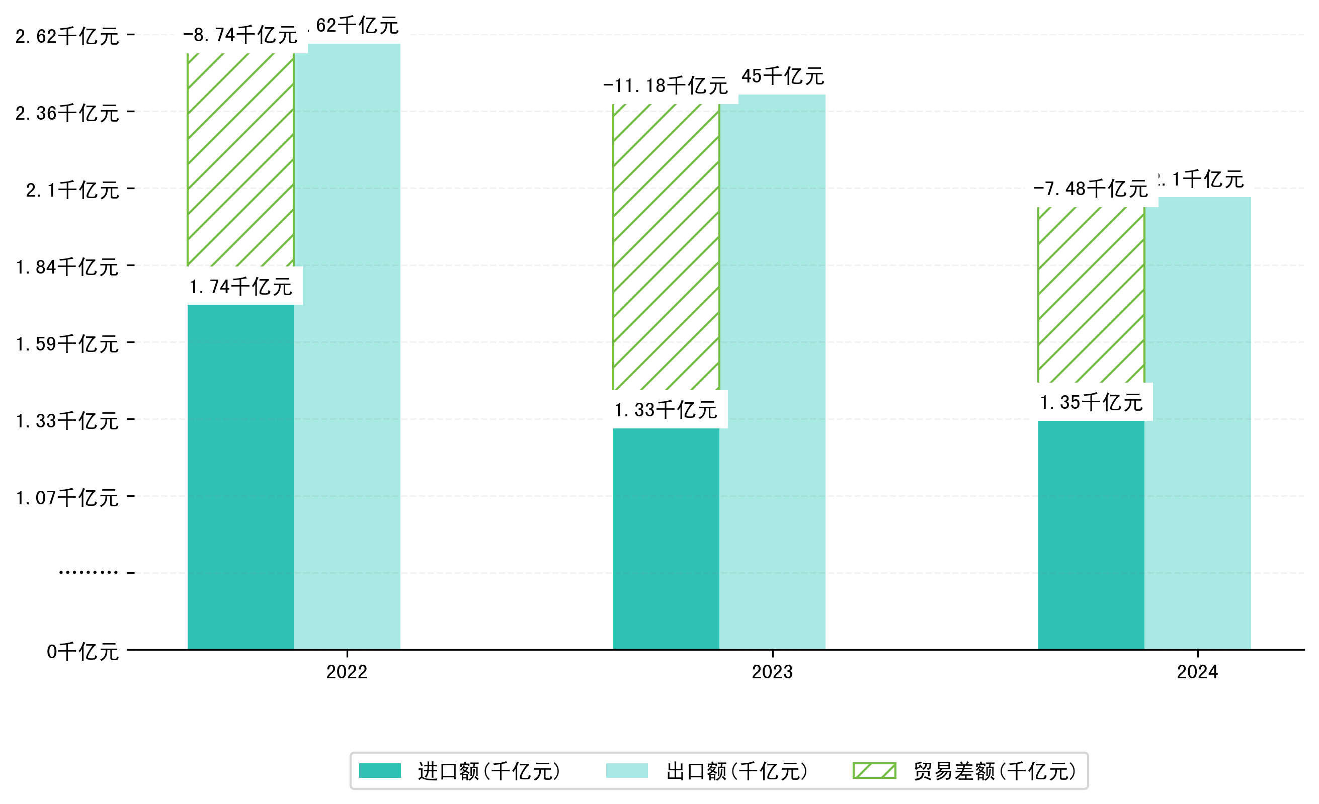 以人民币计,2024年1-9月郑州市贸易差额为748,4603,4329万元(贸易顺差),相比上年同期减少了369,5614,7837万元,同比减少-33.05%。