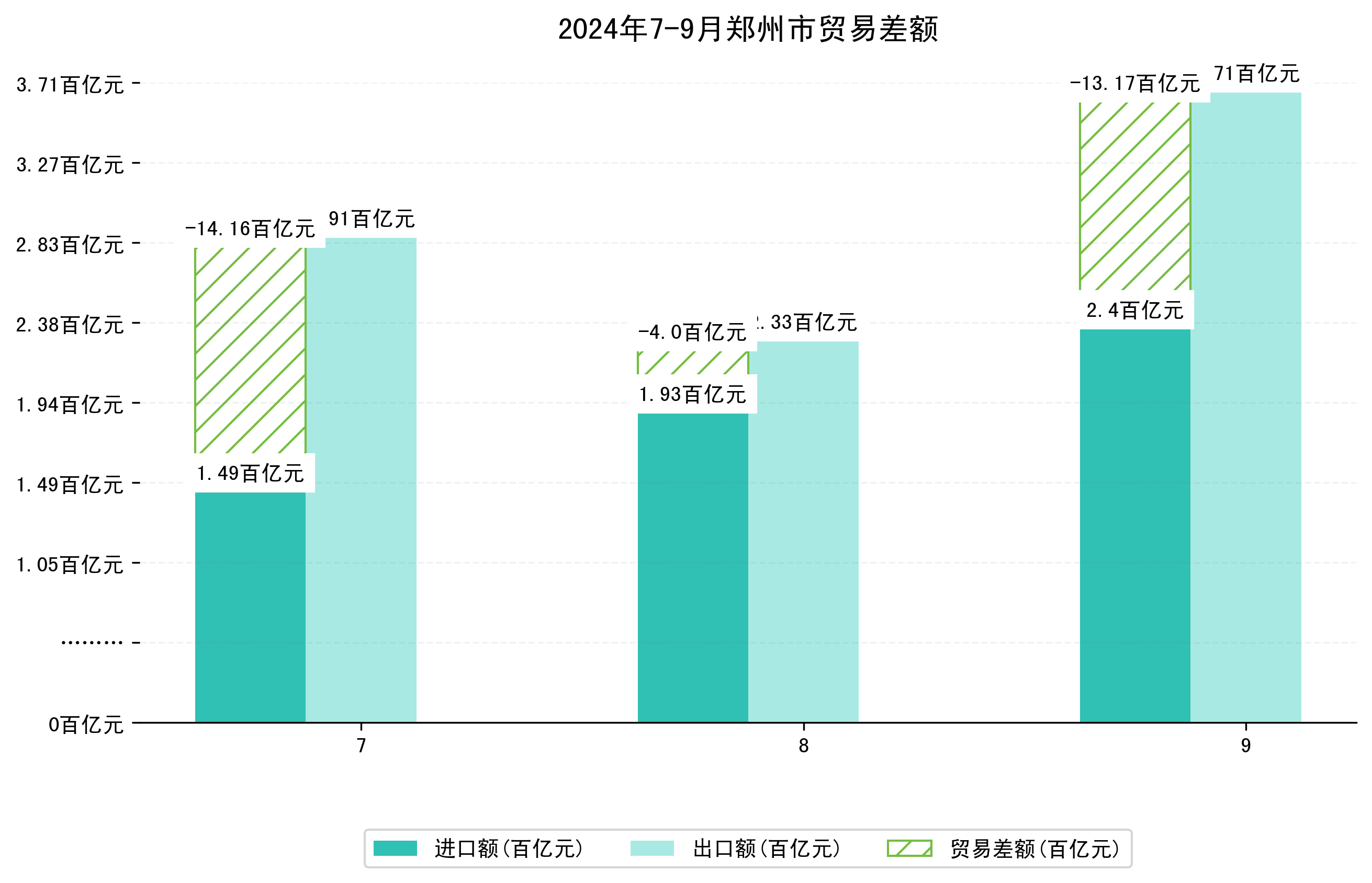 2024年9月郑州市进出口总额及进出口差额统计分析