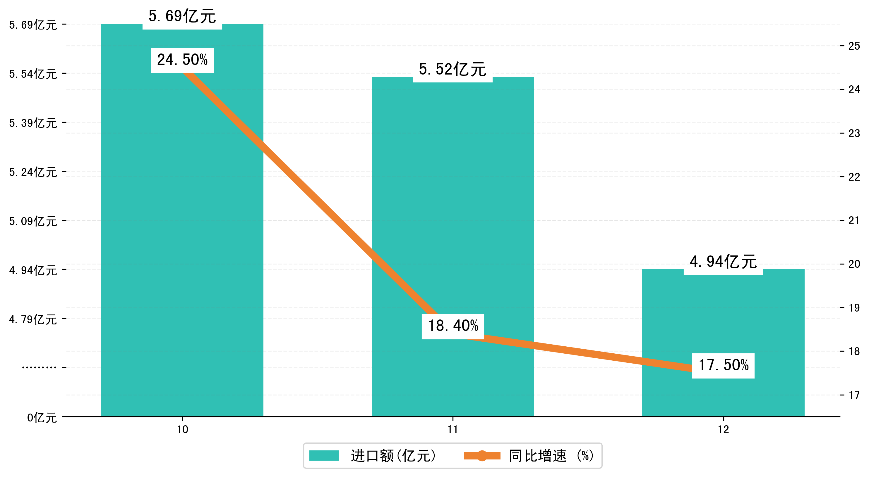 以人民币计,2024年1-12月阳江市进口额为84,6300.4878万元,相比上年同期增加了12,7551.3314万元,同比增加了17.50%。
