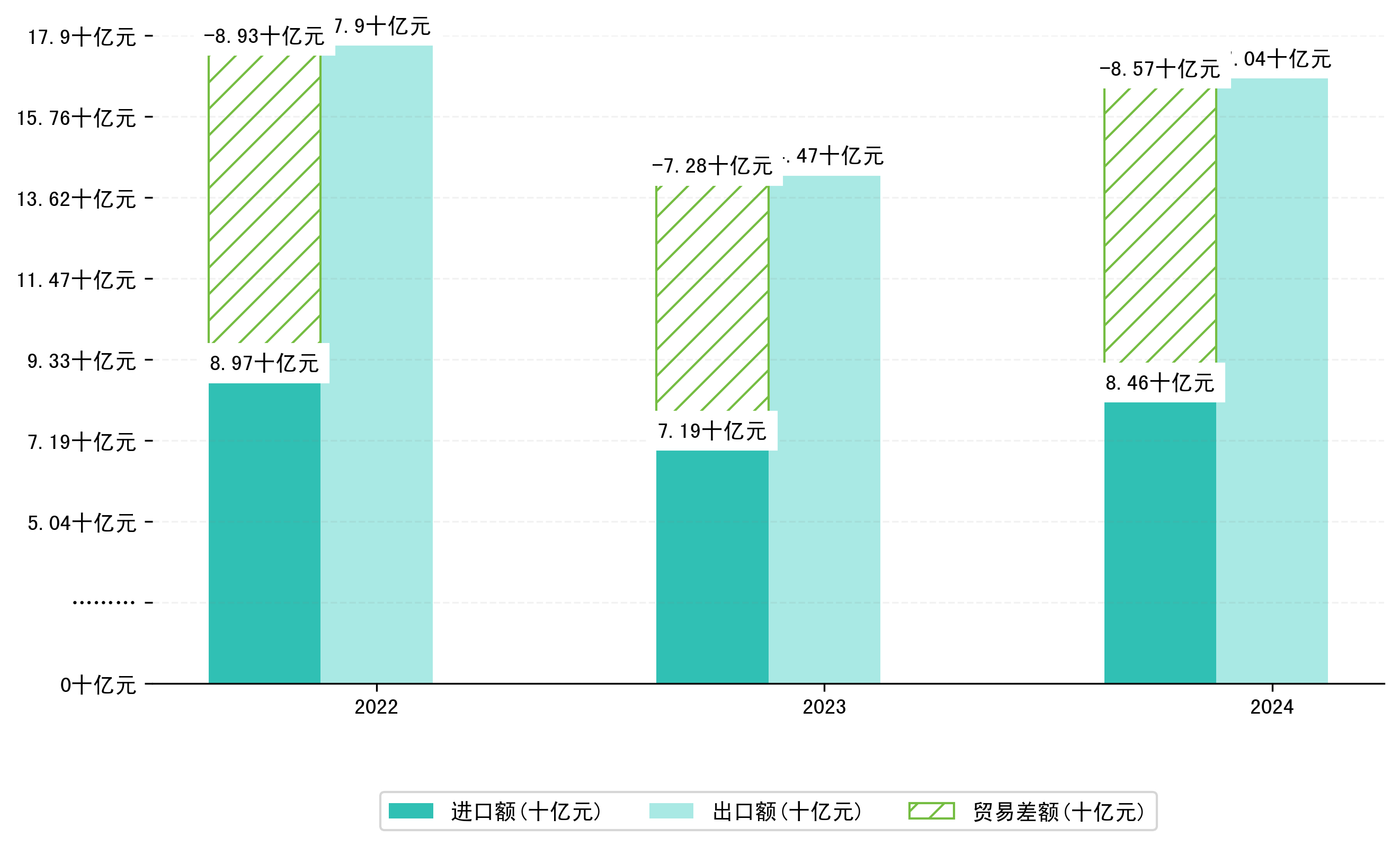以人民币计,2024年1-12月阳江市贸易差额为85,7408,3407万元(贸易顺差),相比上年同期增加了12,9567,3034万元,同比增加17.8%。