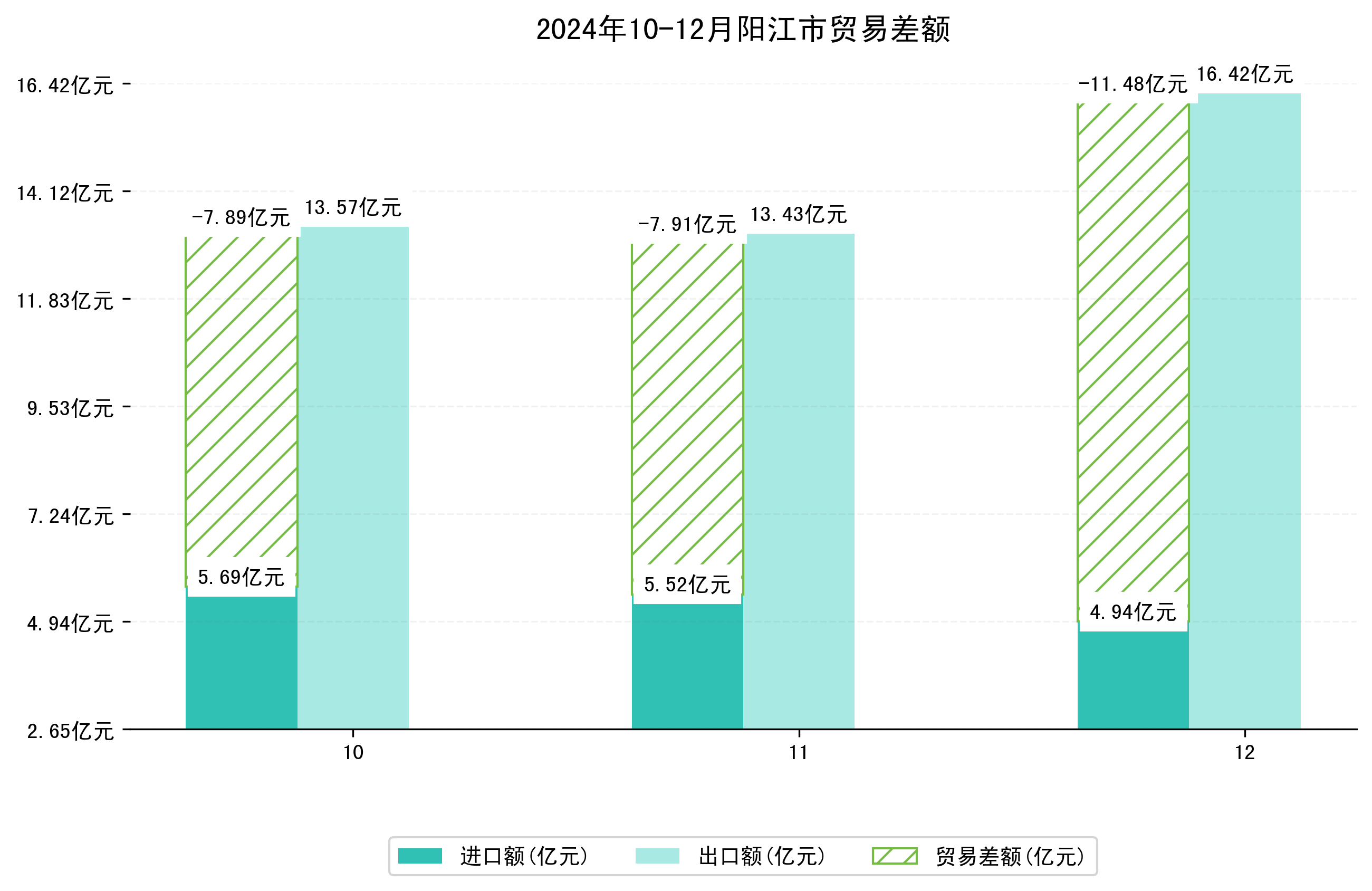 2024年12月阳江市进出口总额及进出口差额统计分析