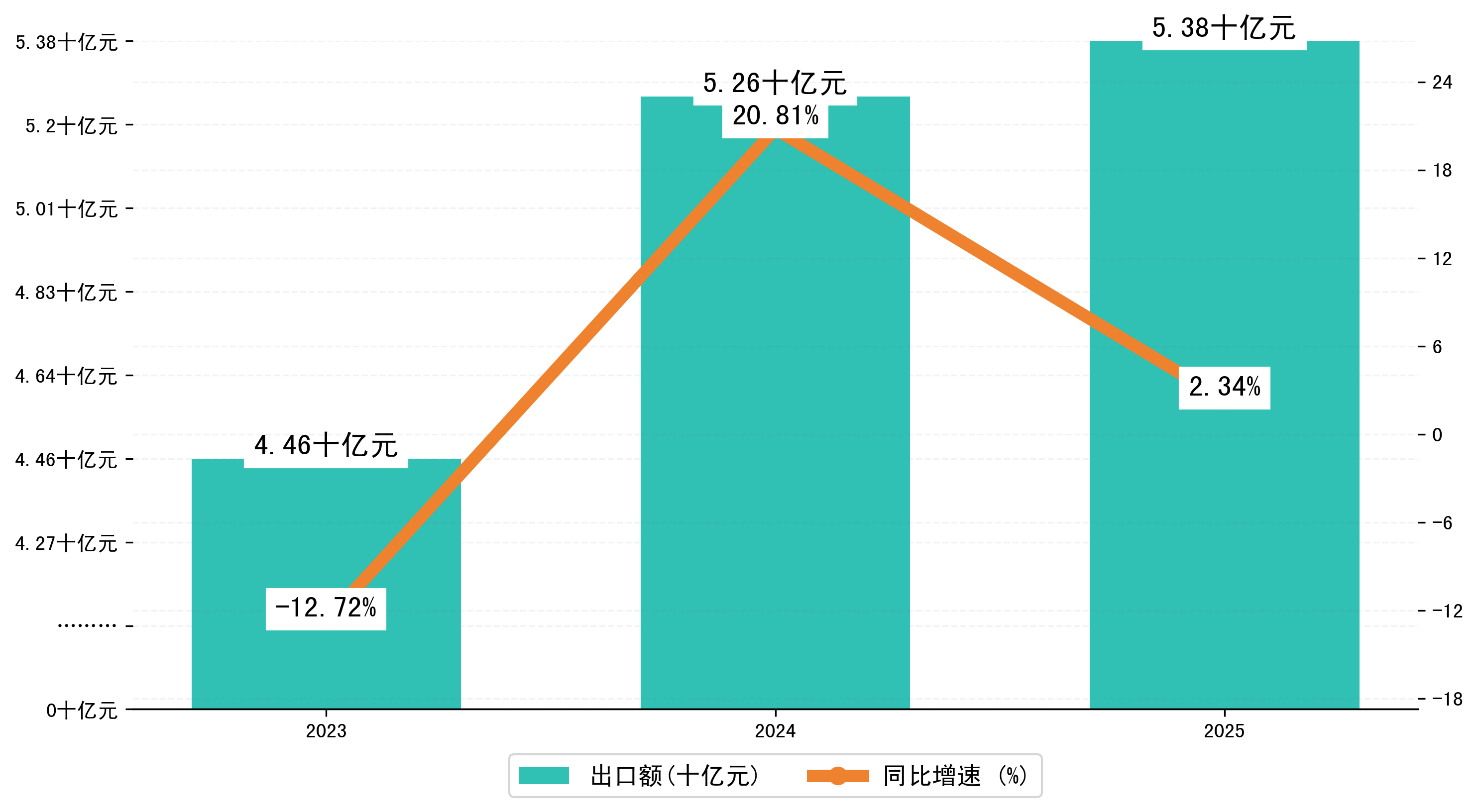以人民币计,2025年1-4月阳江市出口额为53,8305.8287万元,相比上年同期增加了1,2320.525万元,同比增加了2.30%。