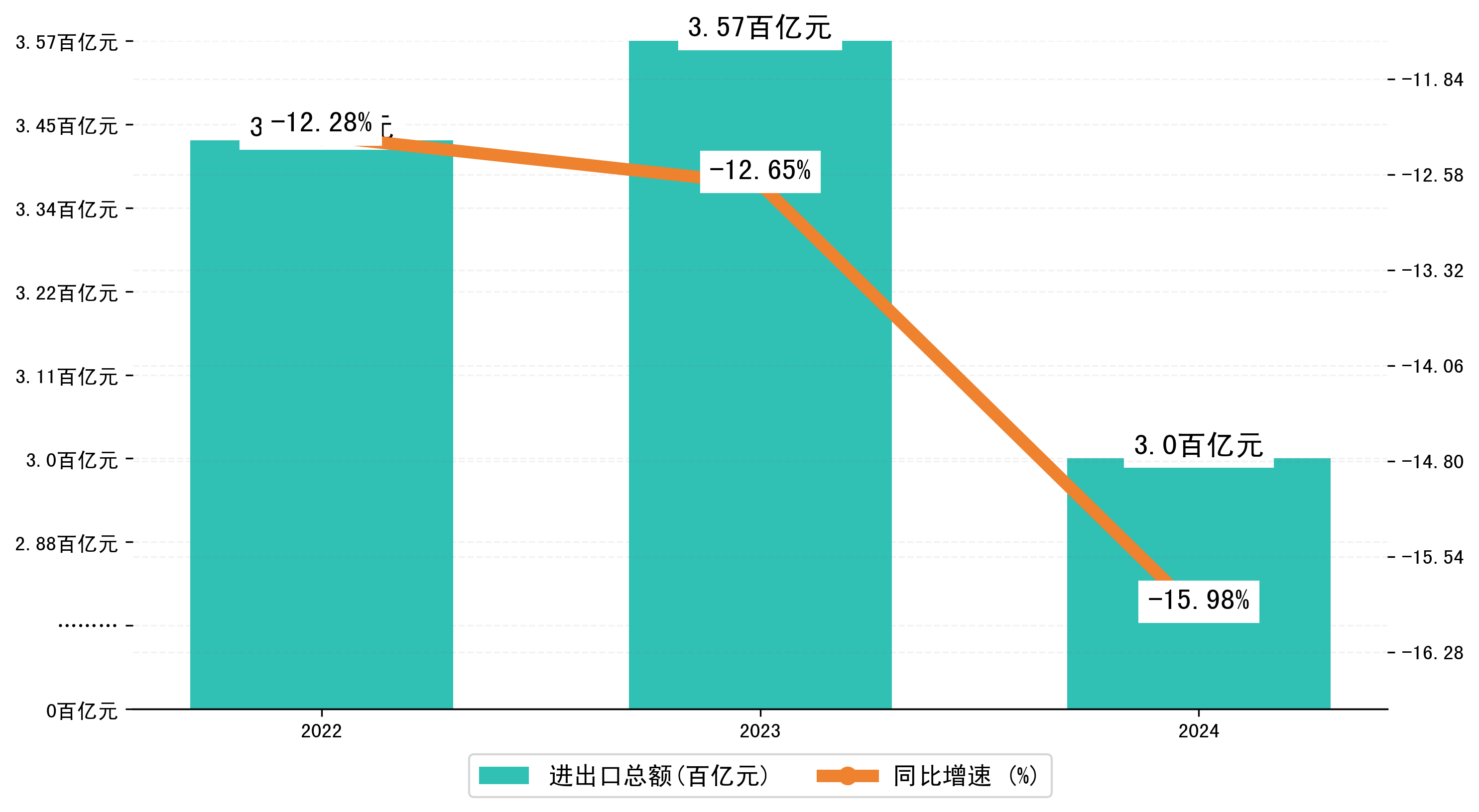 以人民币计,2024年1月烟台市进出口总额为299,6448.2543万元,相比上月减少了89,9245.3553万元;相比上年同期减少了57,0013.2277万元,同比减少了-15.40%。