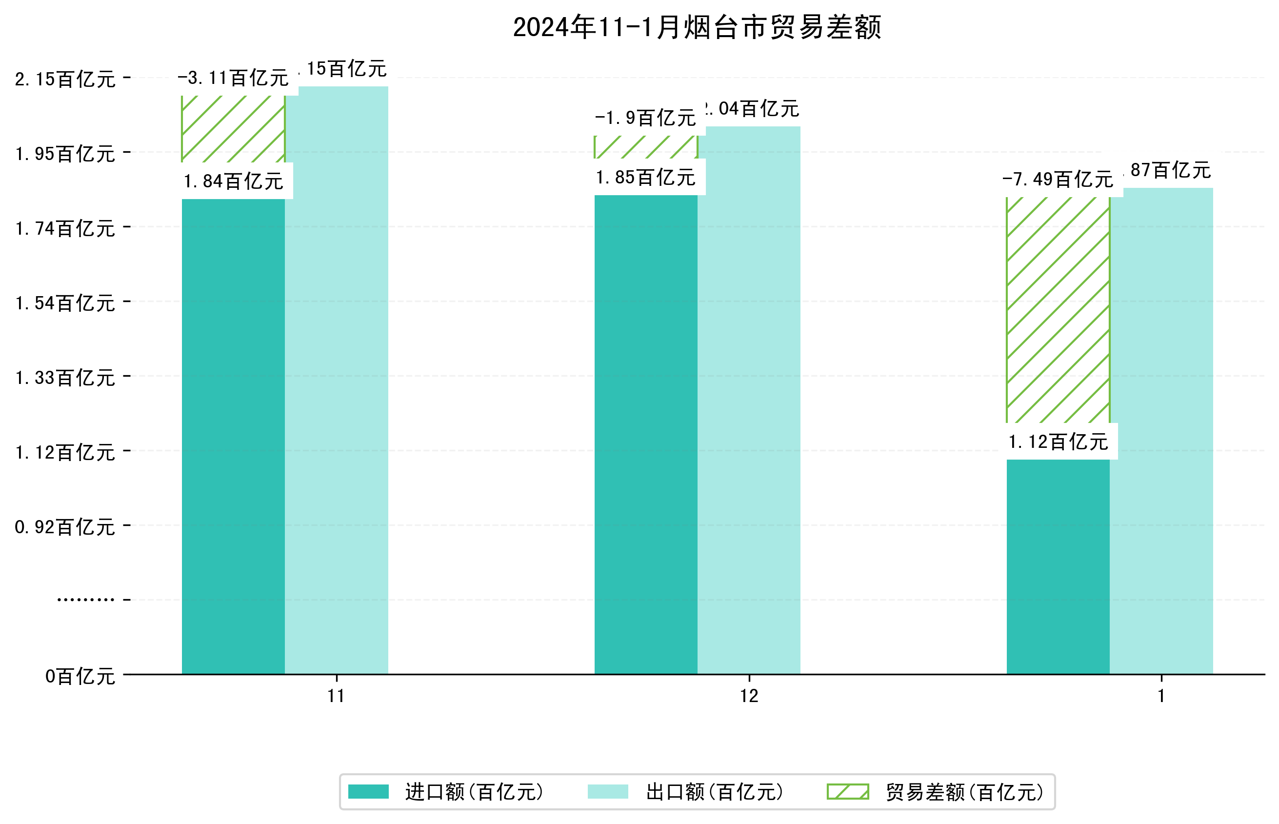 2024年1月烟台市进出口总额及进出口差额统计分析