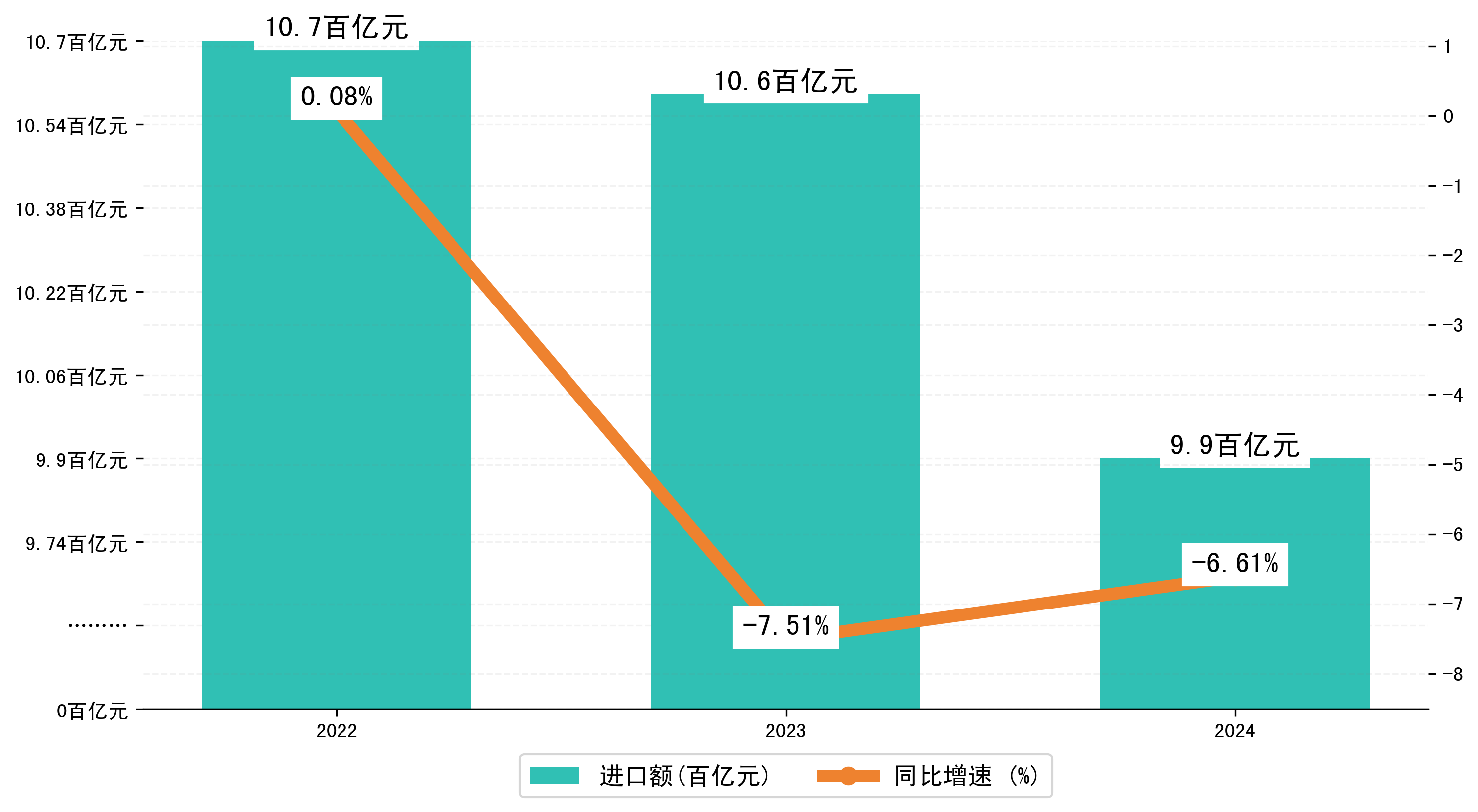 以人民币计,2024年1-7月烟台市进口额为989,6694.4489万元,相比上年同期减少了70,0794.7356万元,同比减少了-6.70%。