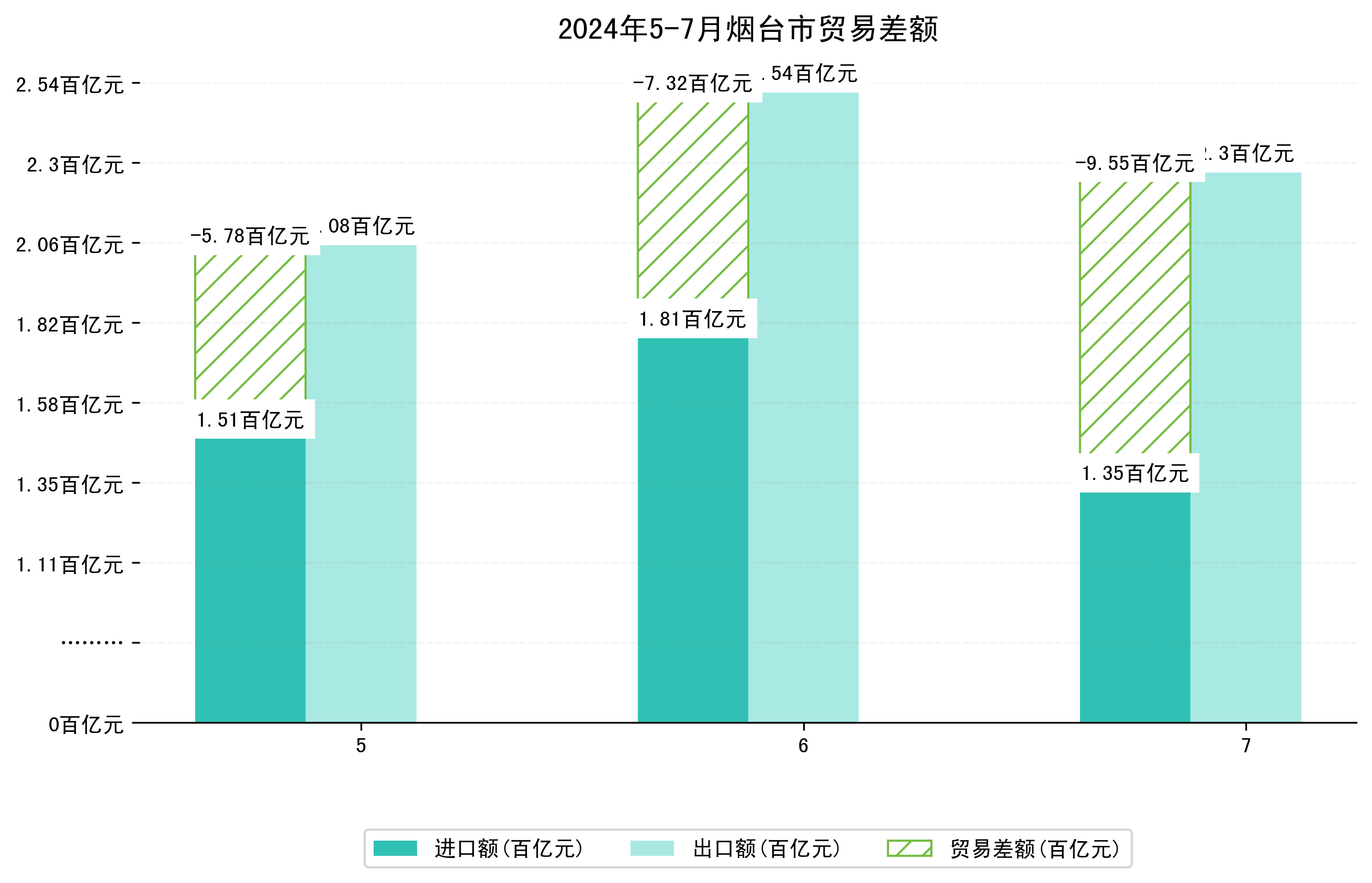2024年7月烟台市进出口总额及进出口差额统计分析