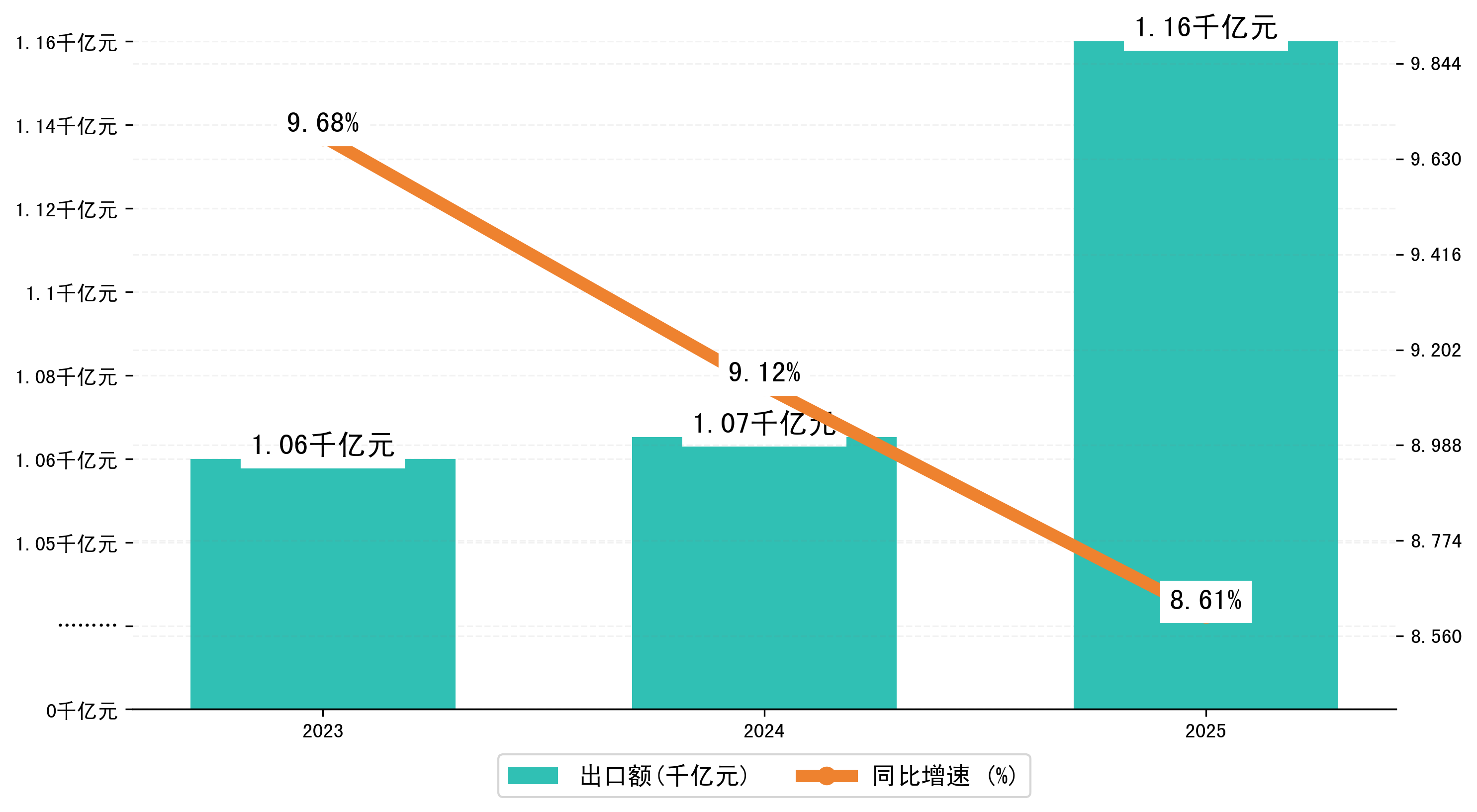 以人民币计,2025年1-5月烟台市出口额为1161,6229.1665万元,相比上年同期增加了92,0855.0589万元,同比增加了8.40%。