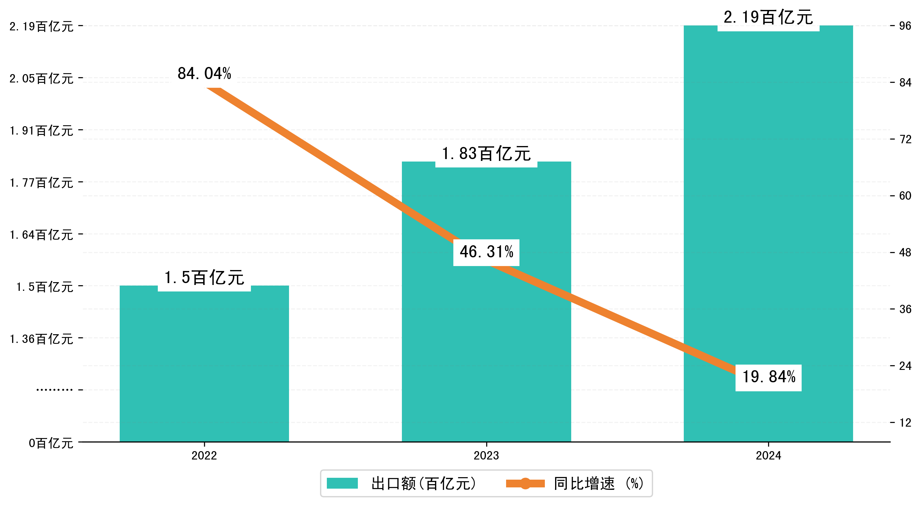 以人民币计,2024年1-10月宜宾市出口额为219,0100.6445万元,相比上年同期增加了36,2623.353万元,同比增加了20.50%。