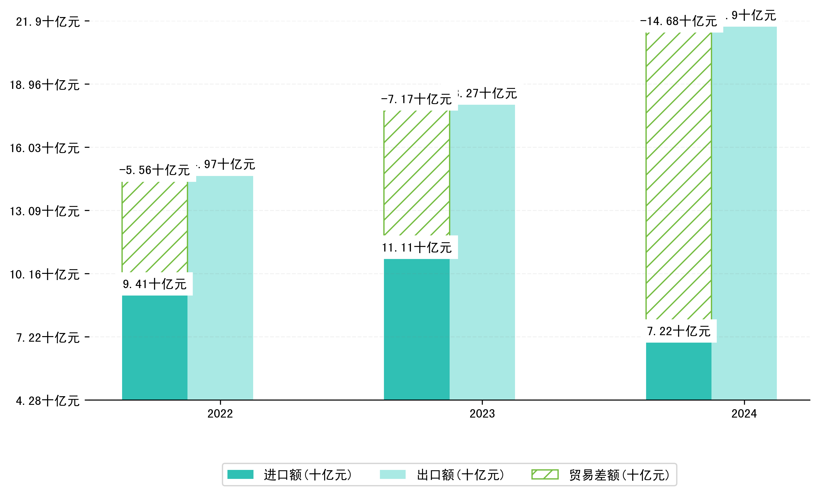 以人民币计,2024年10月宜宾市贸易差额为32,0260,3344万元(贸易顺差),相比上月增加了17,0743,6464万元,即2,4321,9126万美元;相比上年同期增加了31,5103,3650万元,同比增加6110.24%。
