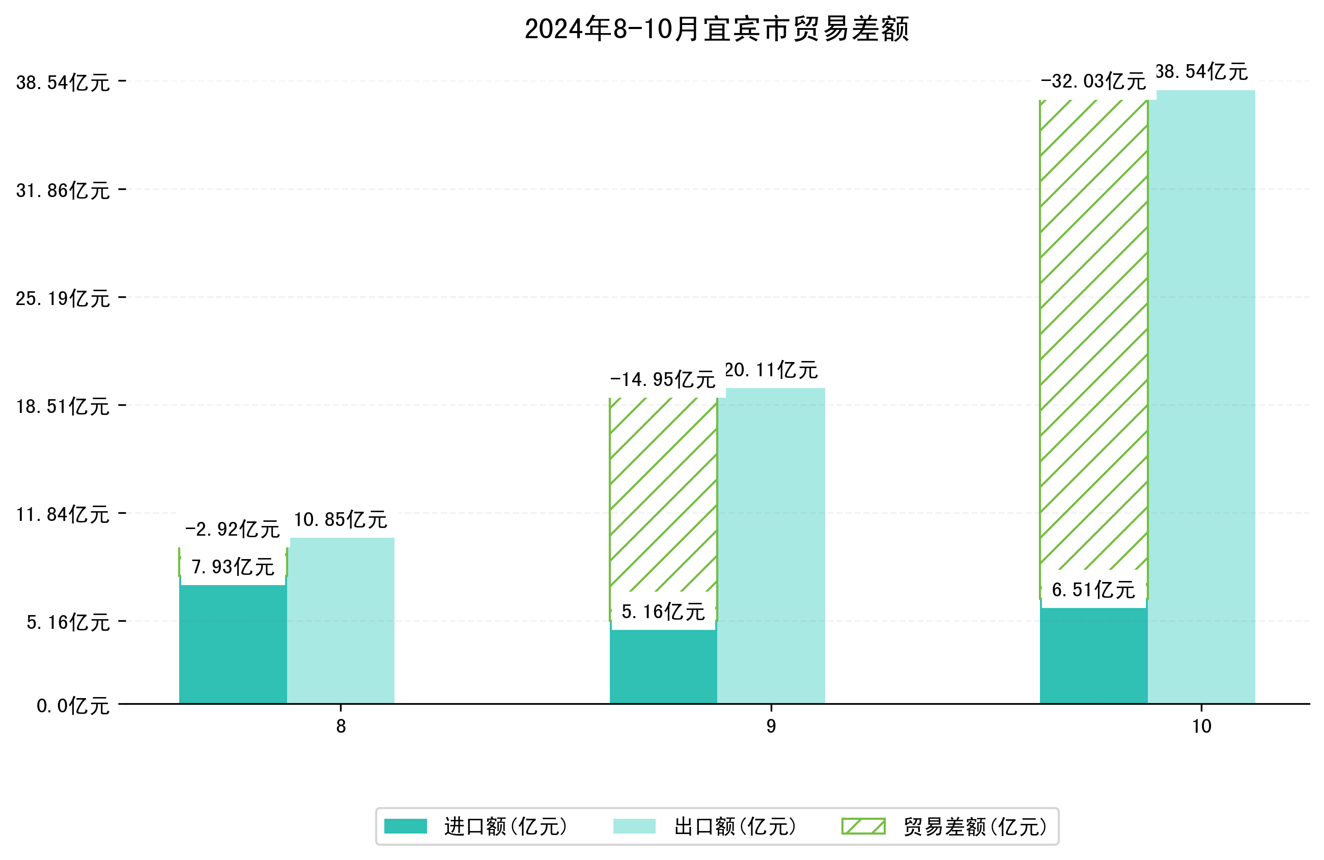 2024年10月宜宾市进出口总额及进出口差额统计分析