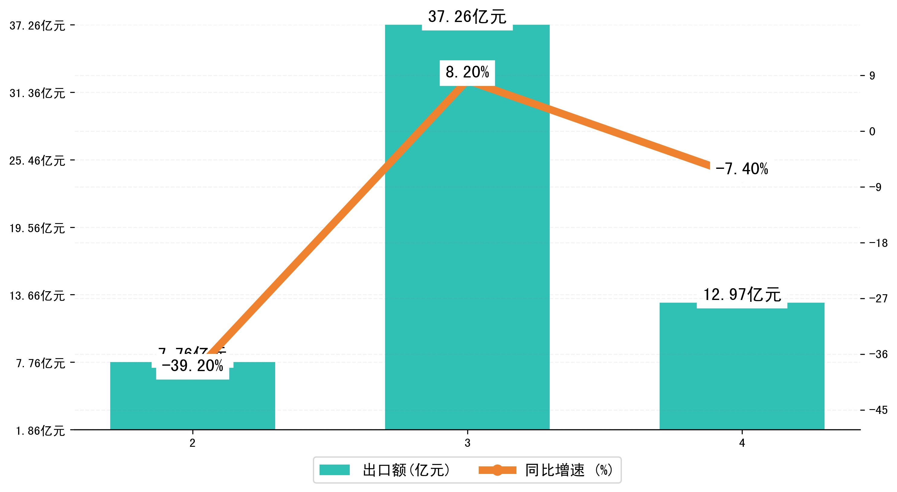 (图二:2024年2-4月宜宾市出口额)