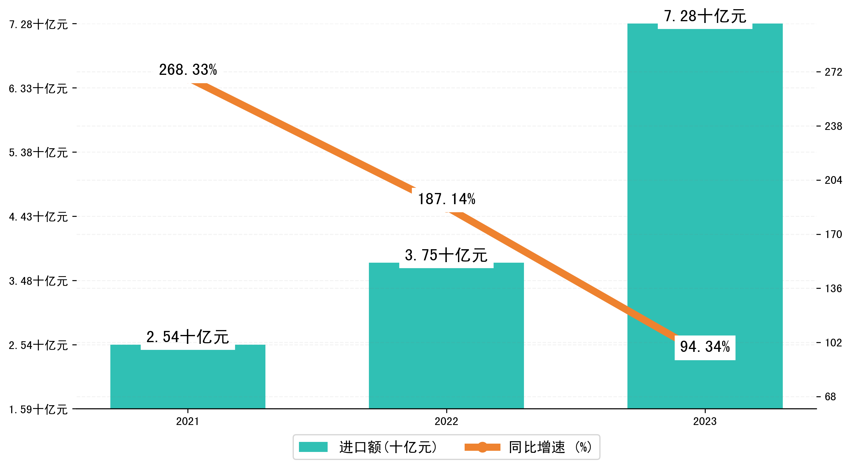 以美元计,2023年1-5月宜宾市进口额为10,6105.1585万美元,相比上年同期增加了4,7339.955万美元,同比增加78.20%。