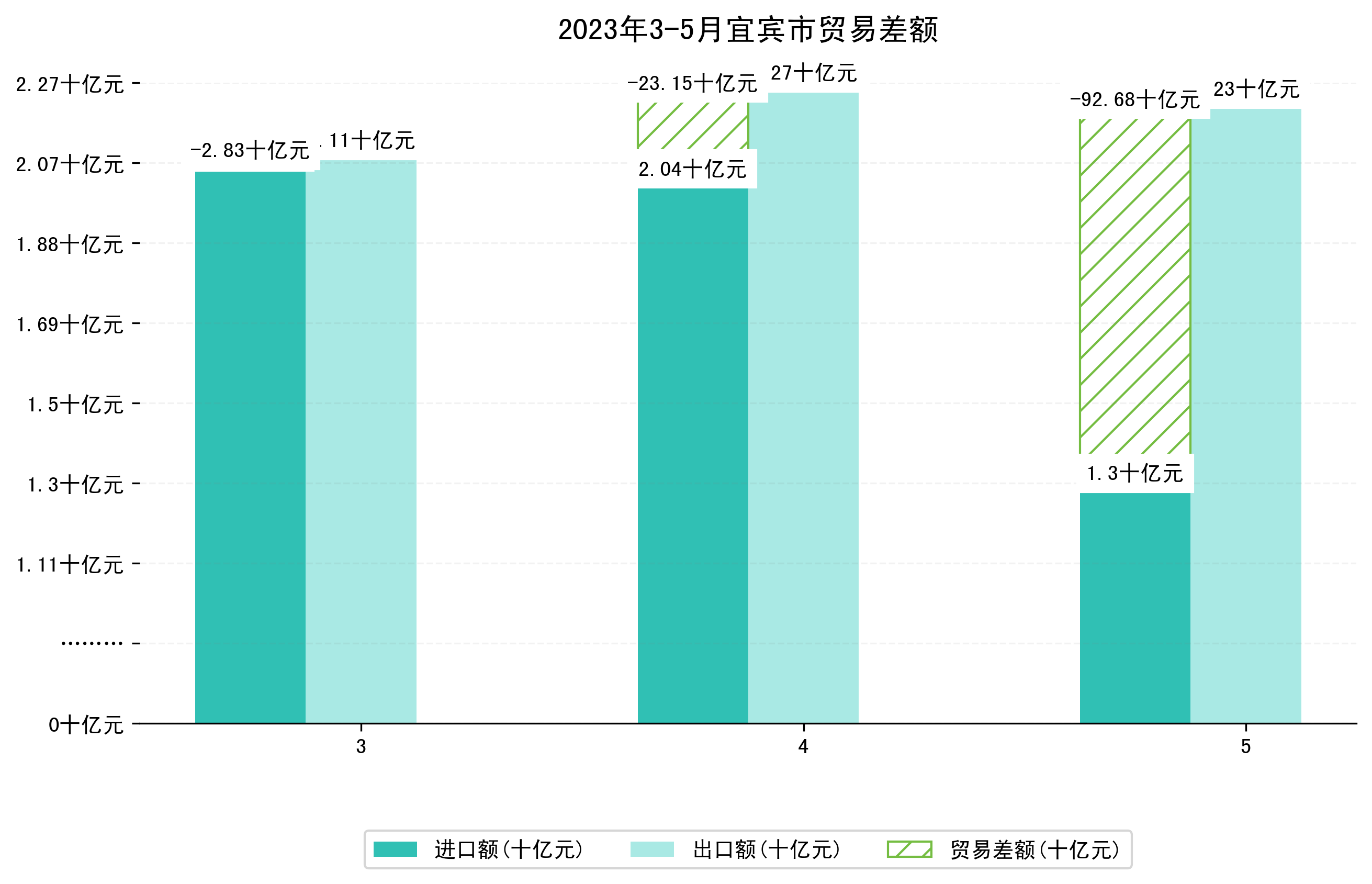 2023年5月宜宾市进出口总额及进出口差额统计分析